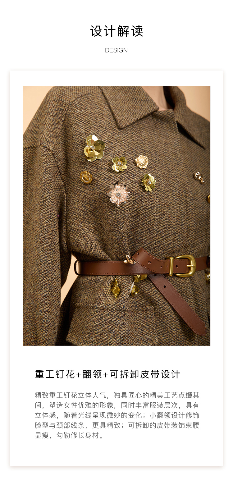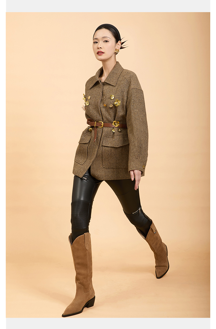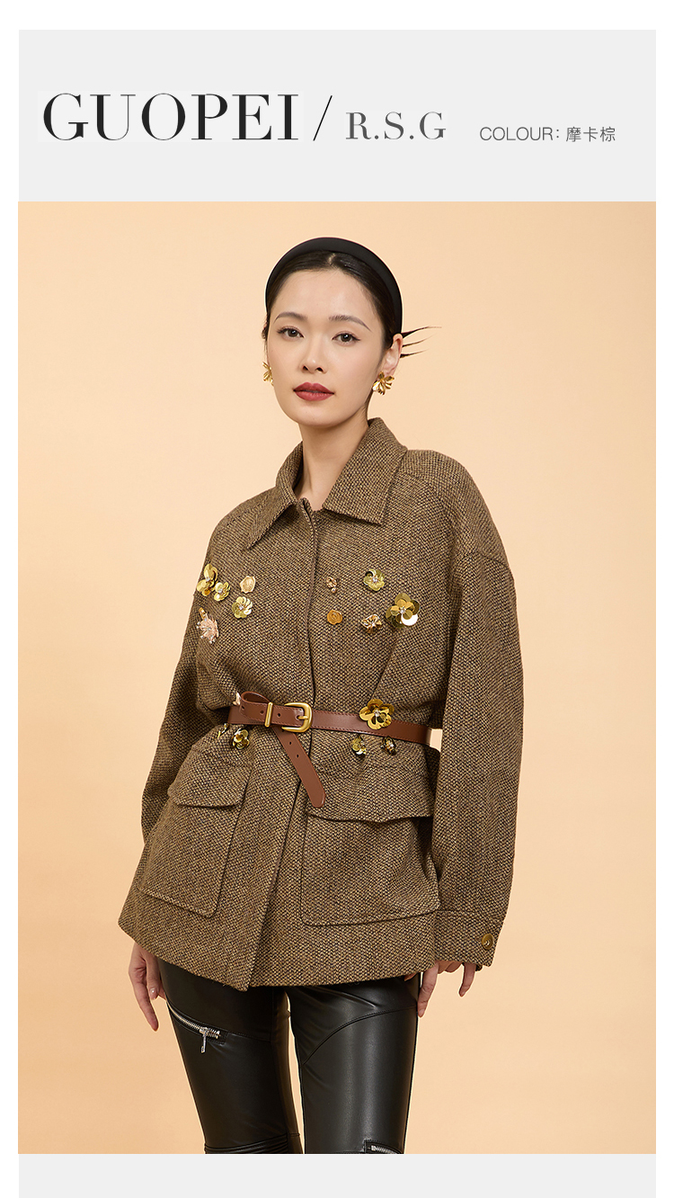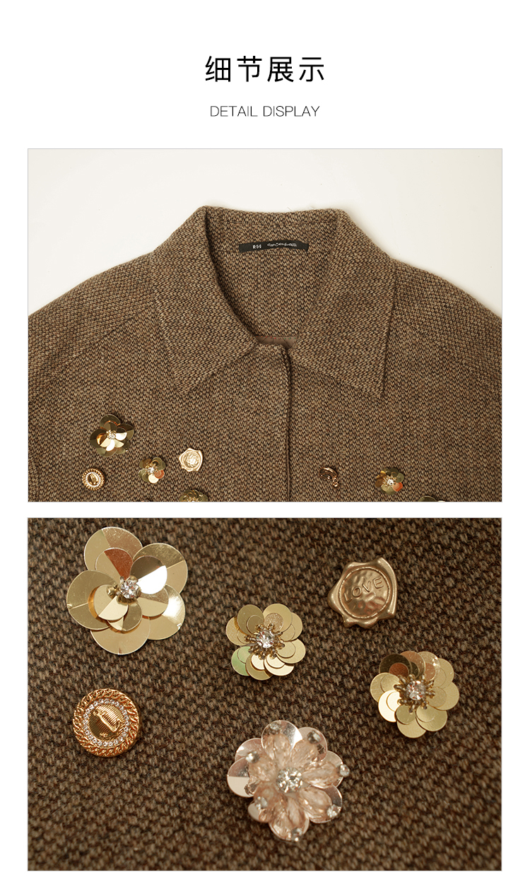 郭培成衣品牌精品系列千金风钉花羊毛外套