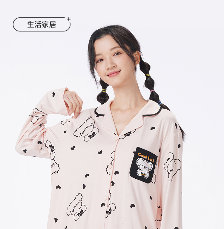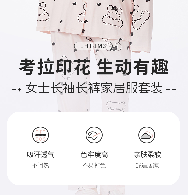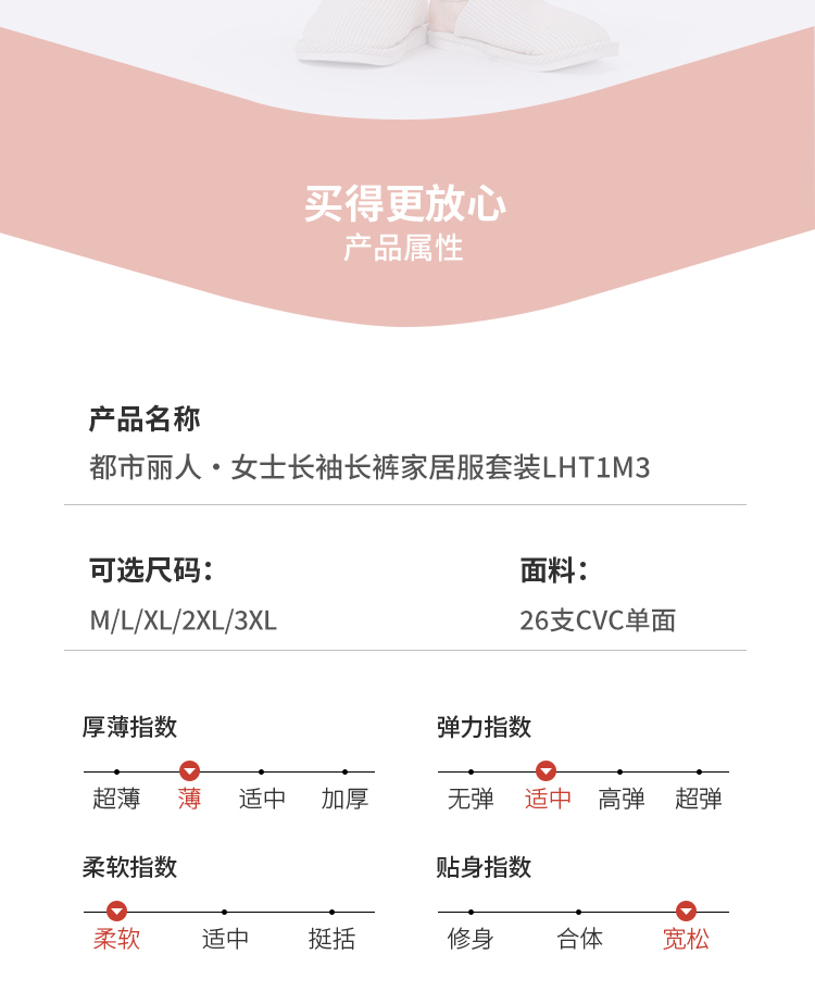都市丽人睡衣生活家居长袖家居服26支CVC单面薄女士棉质套装LHT1M3