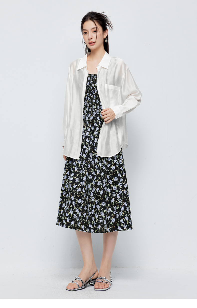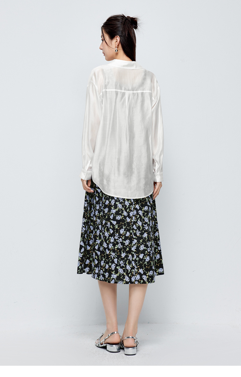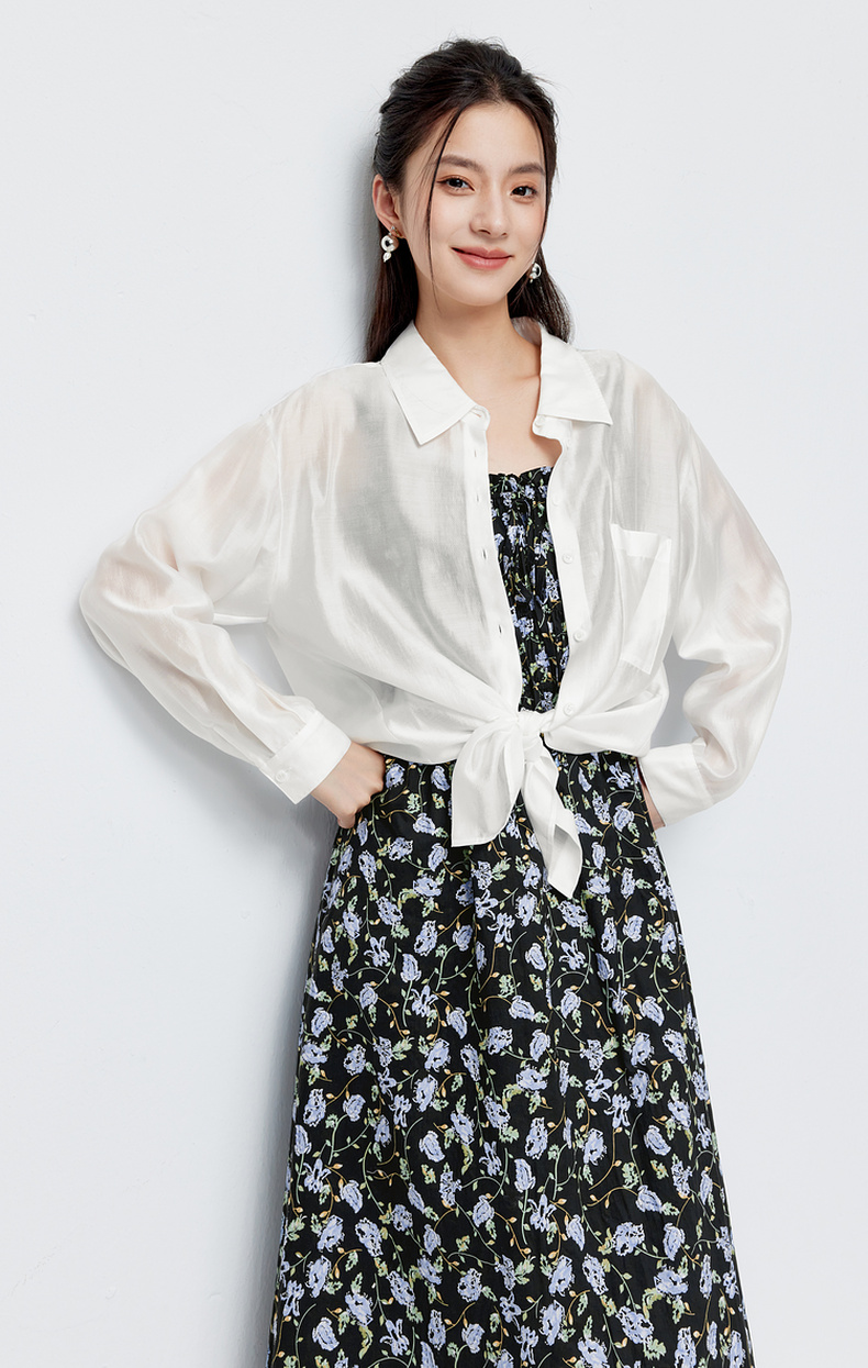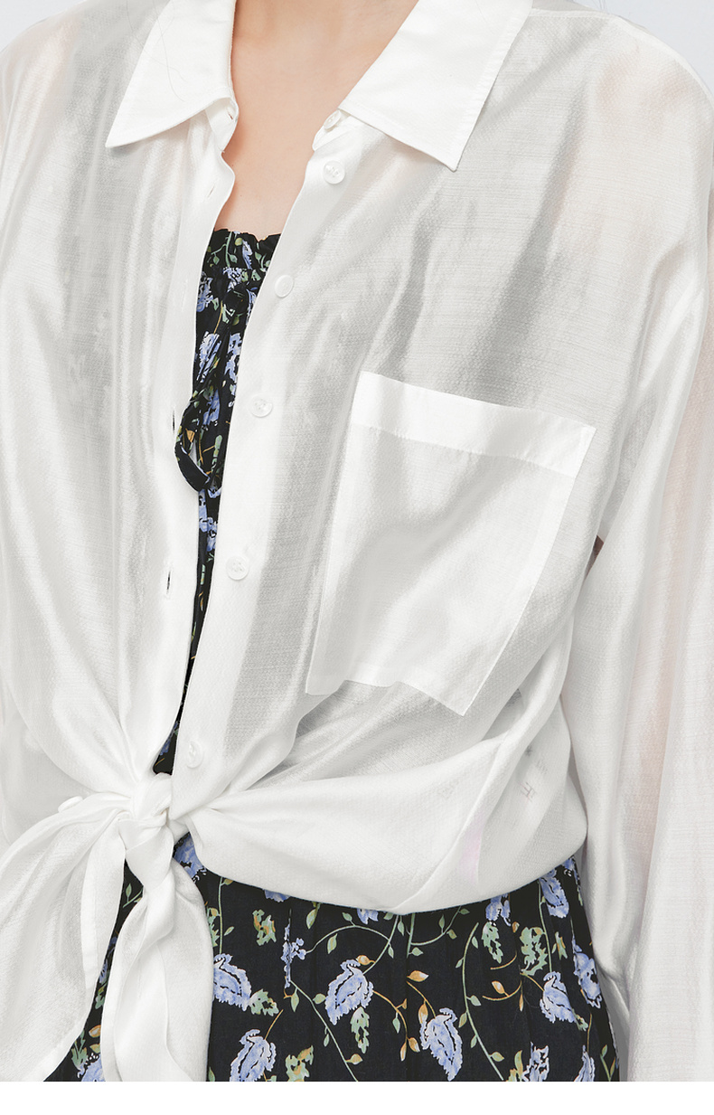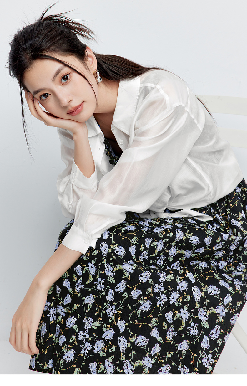 【商场同款】诗凡黎白色莱赛尔衬衫2024夏新款高级衬衣3F5220551