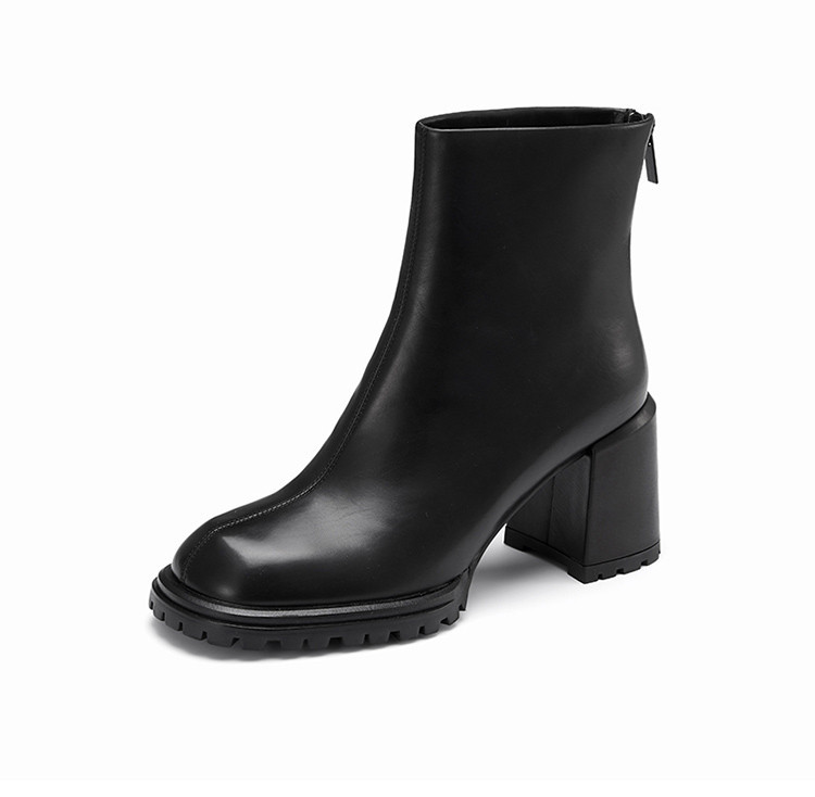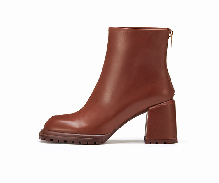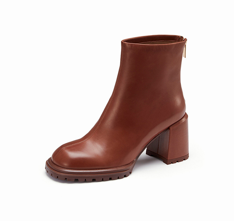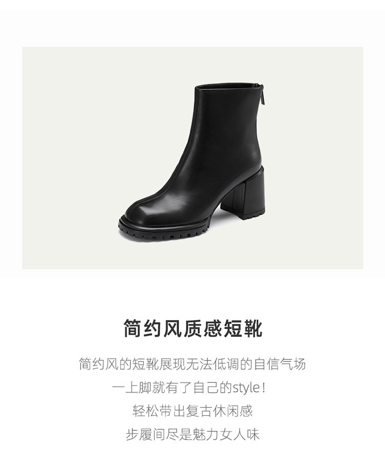 westory冬季短靴复古休闲大气质感粗高跟时装靴女W22DS8187101