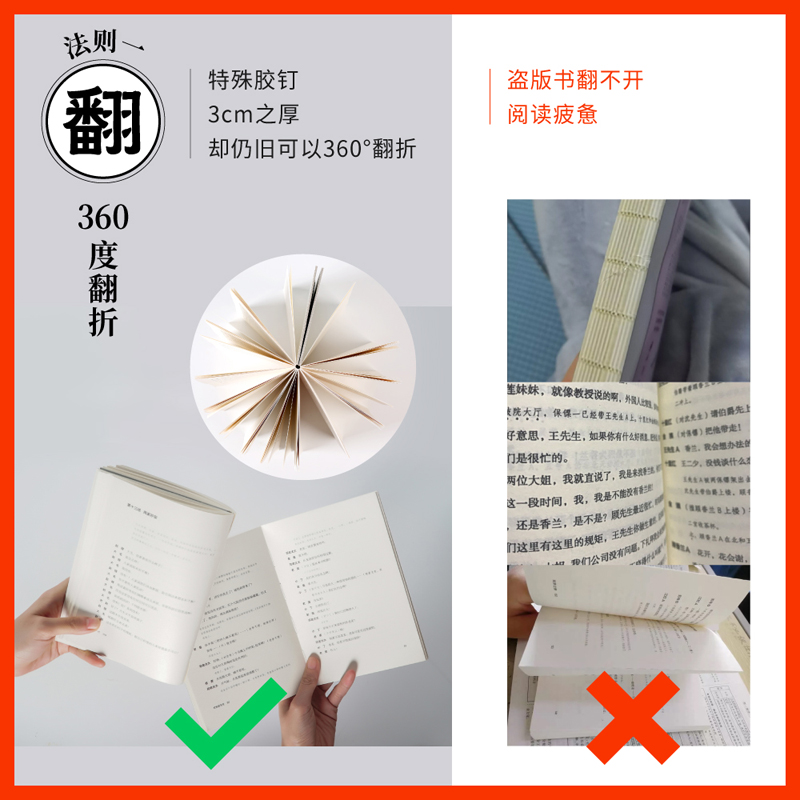 裸脊锁线装帧,不仅可180°平摊,还可360°翻折,单手持书无压力。