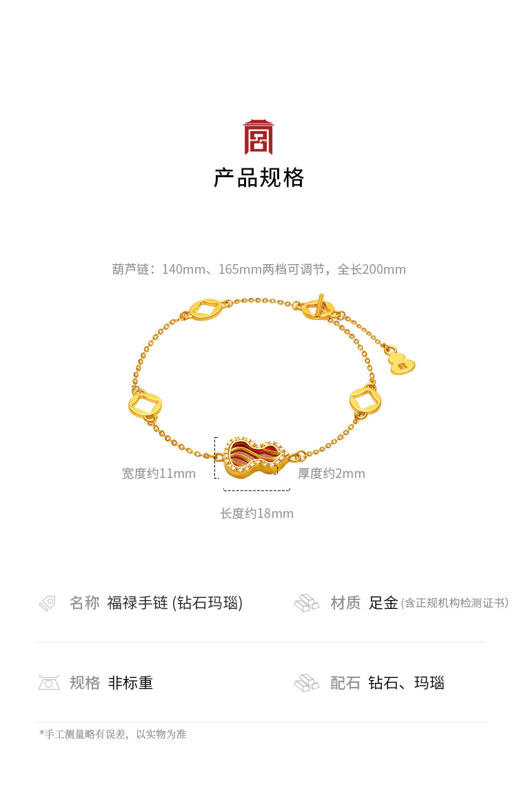 宫匠造办 福禄手链 黄金镶钻玛瑙
