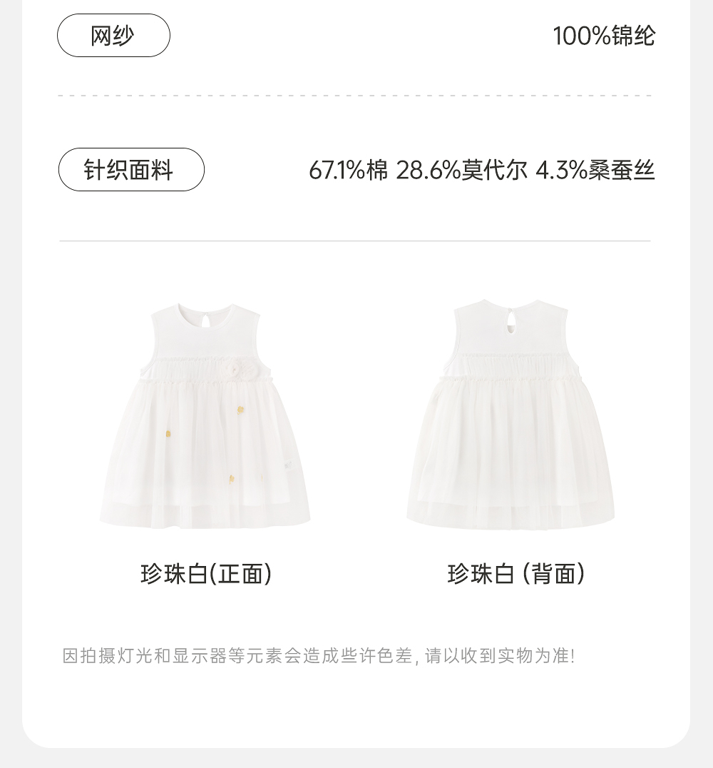 英氏女童连衣裙夏季甜美女生小白裙桑蚕丝透气连衣裙YRLFJ1R052A
