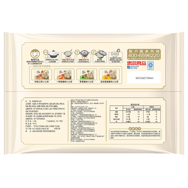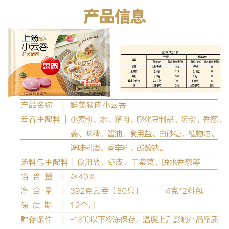【百】思念上汤小云吞 鲜美猪肉400g/50只