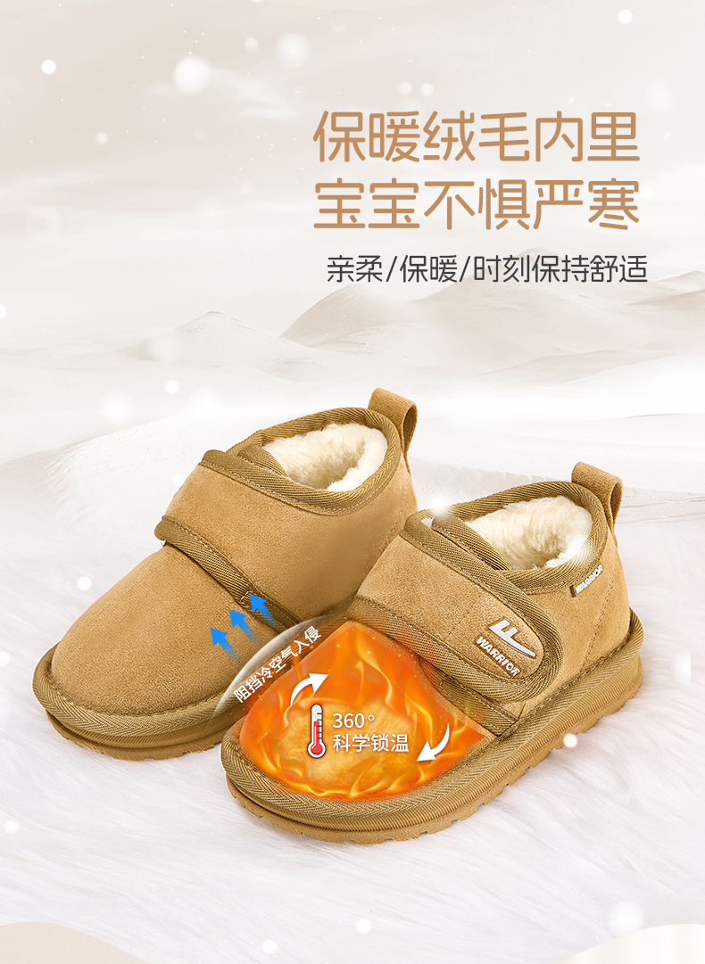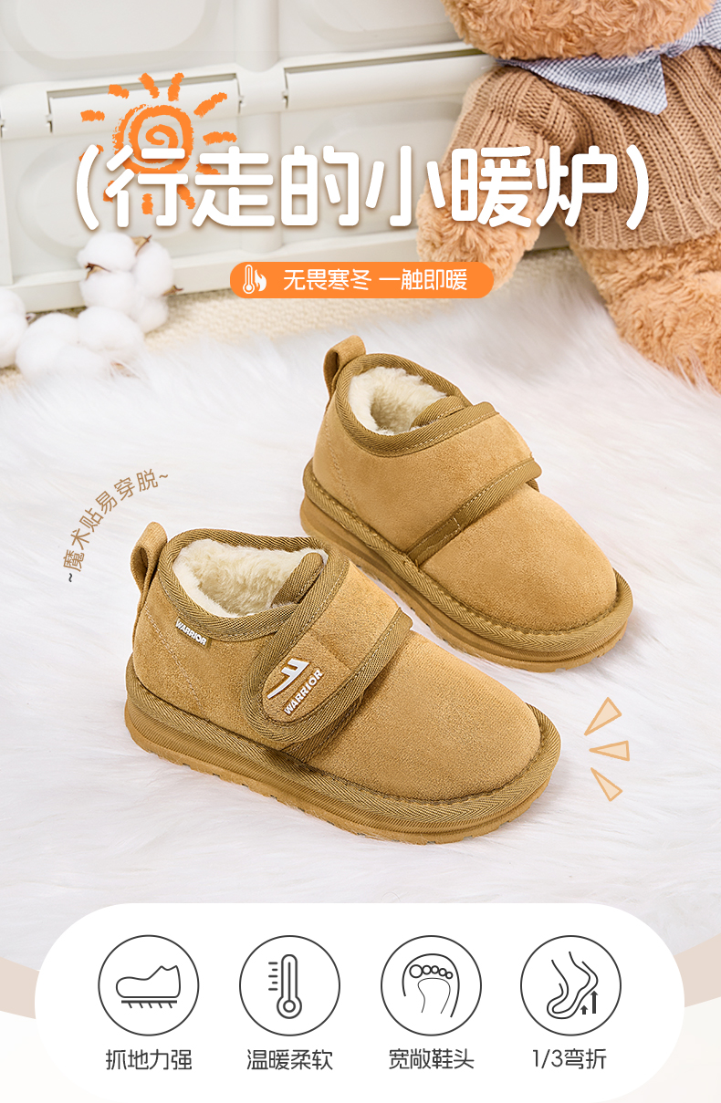 回力儿童雪地靴2025冬季新款加绒宝宝女童棉靴魔术贴男童保暖棉鞋