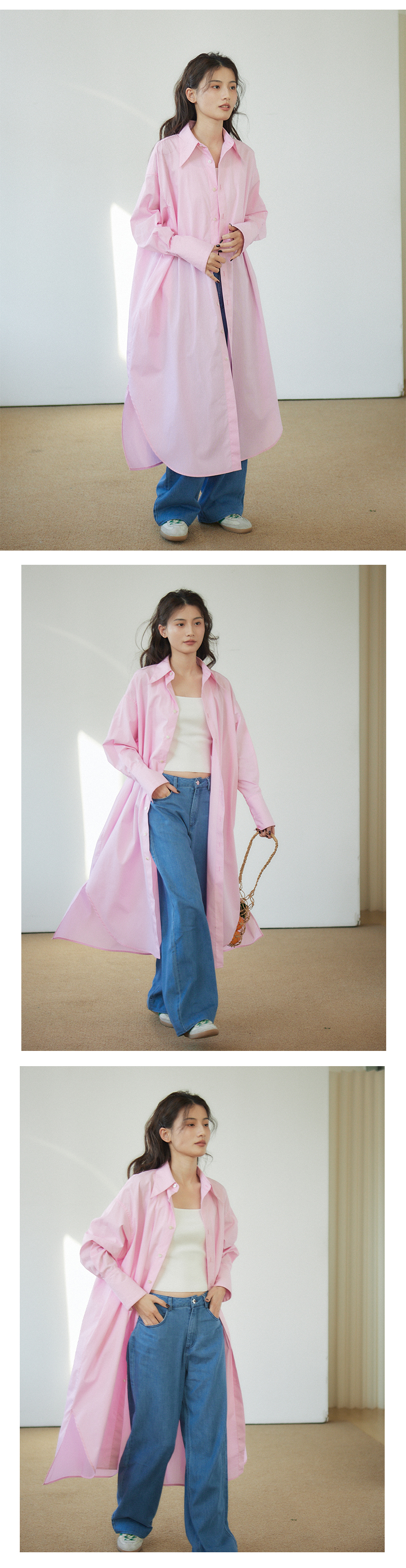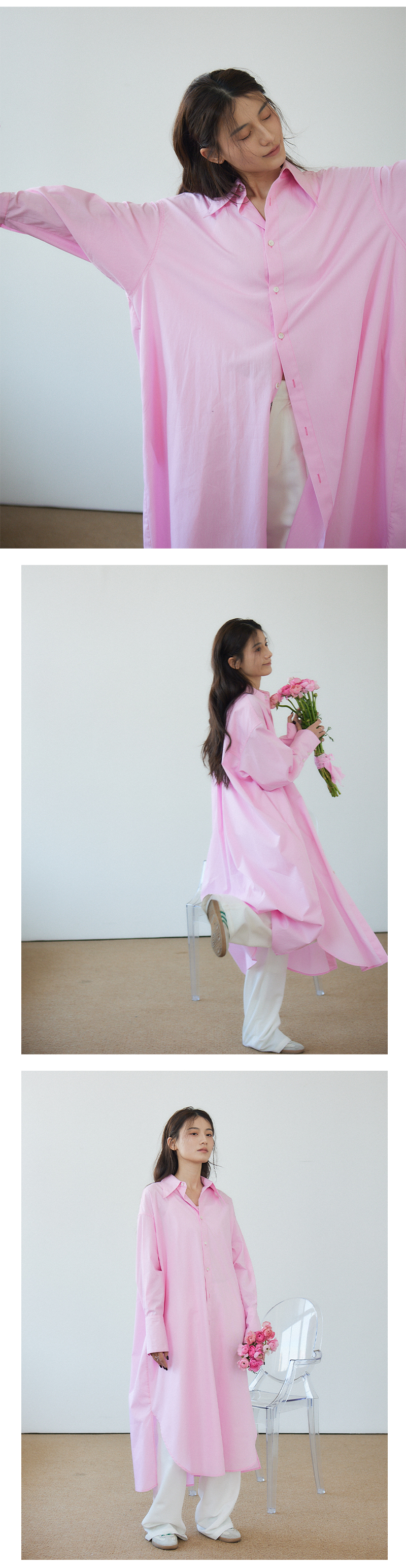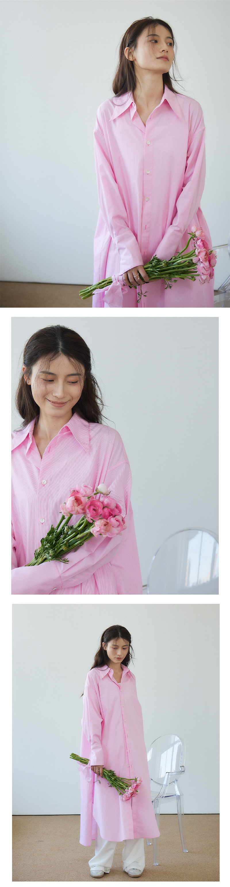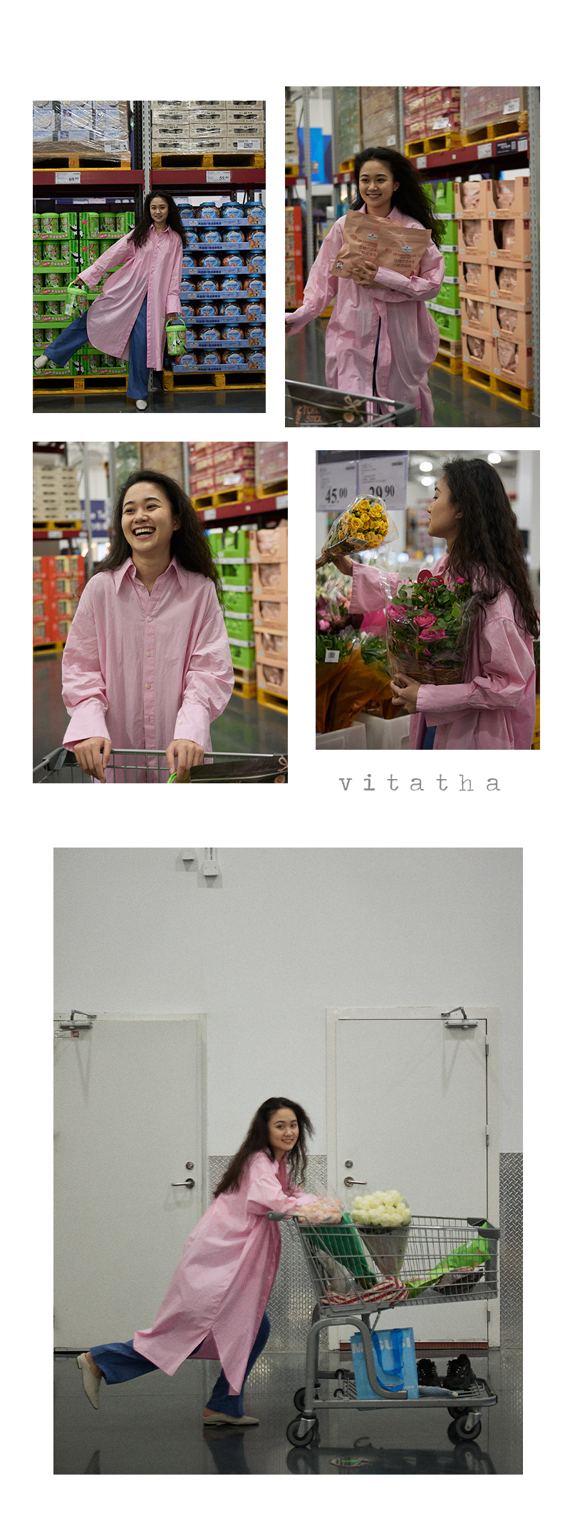 Vitatha番塔塔/23AW-TX05/休闲春樱粉长袖衬衫裙罩衫