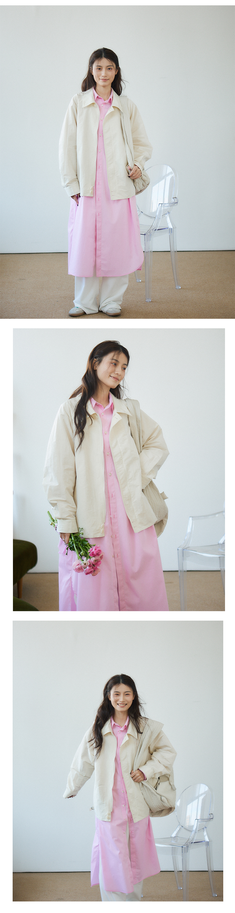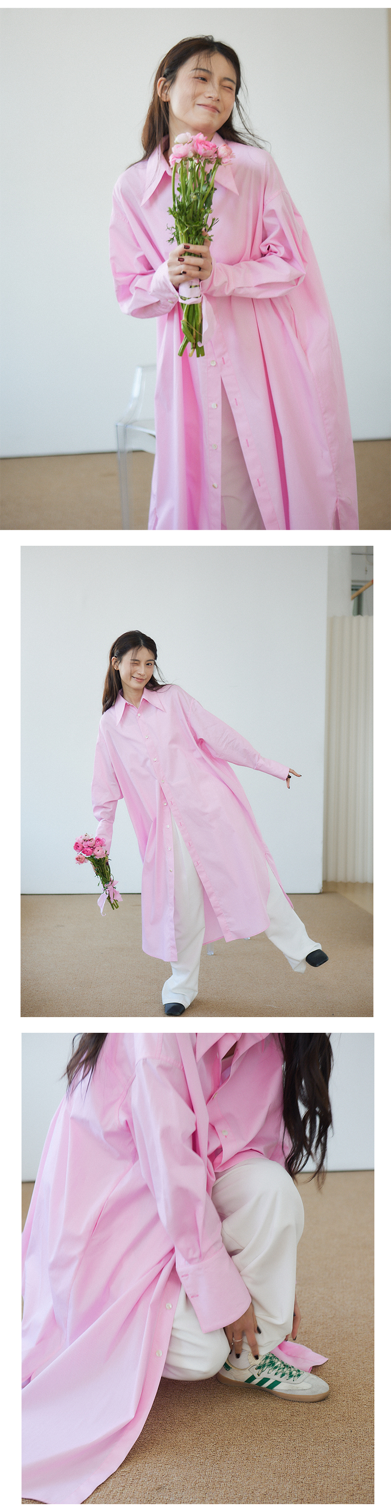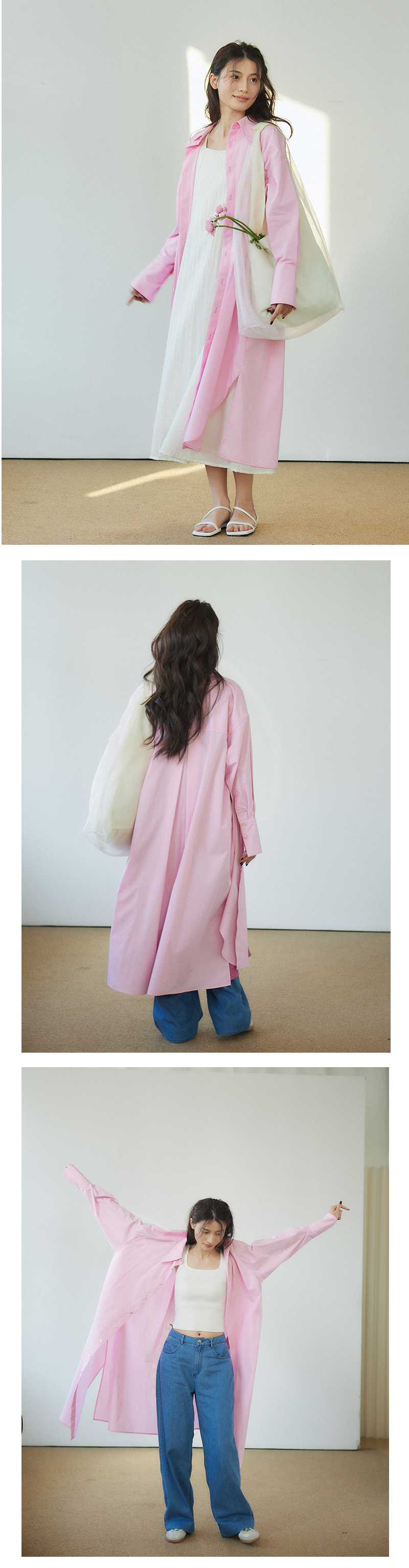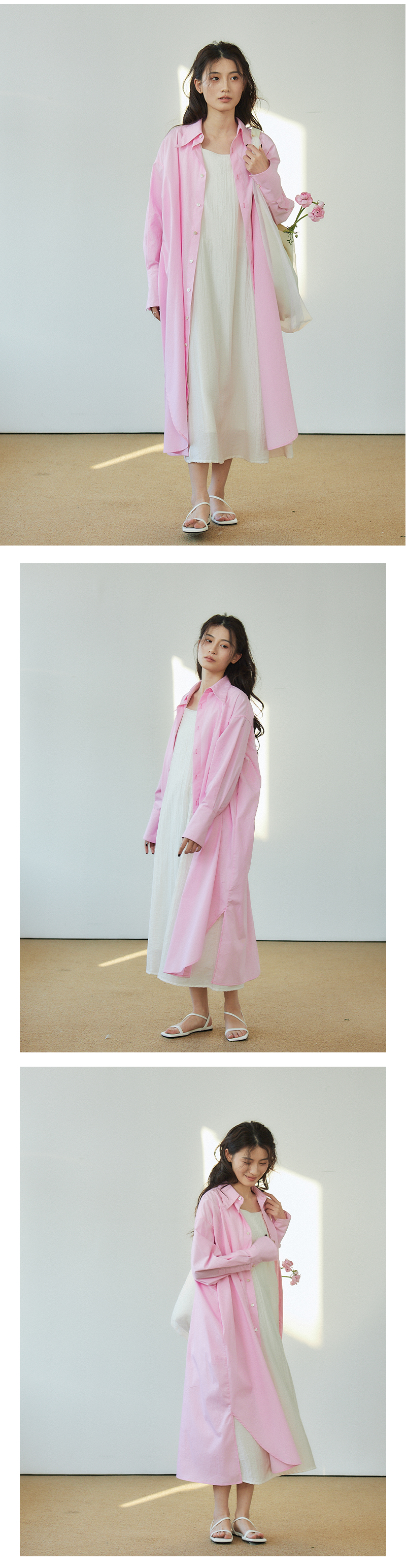 Vitatha番塔塔/23AW-TX05/休闲春樱粉长袖衬衫裙罩衫