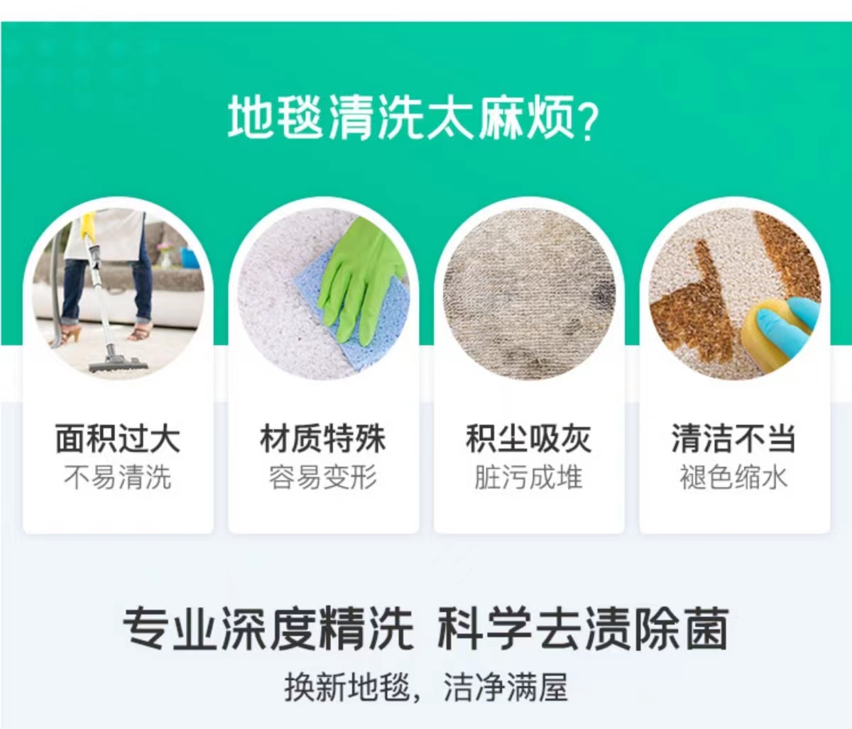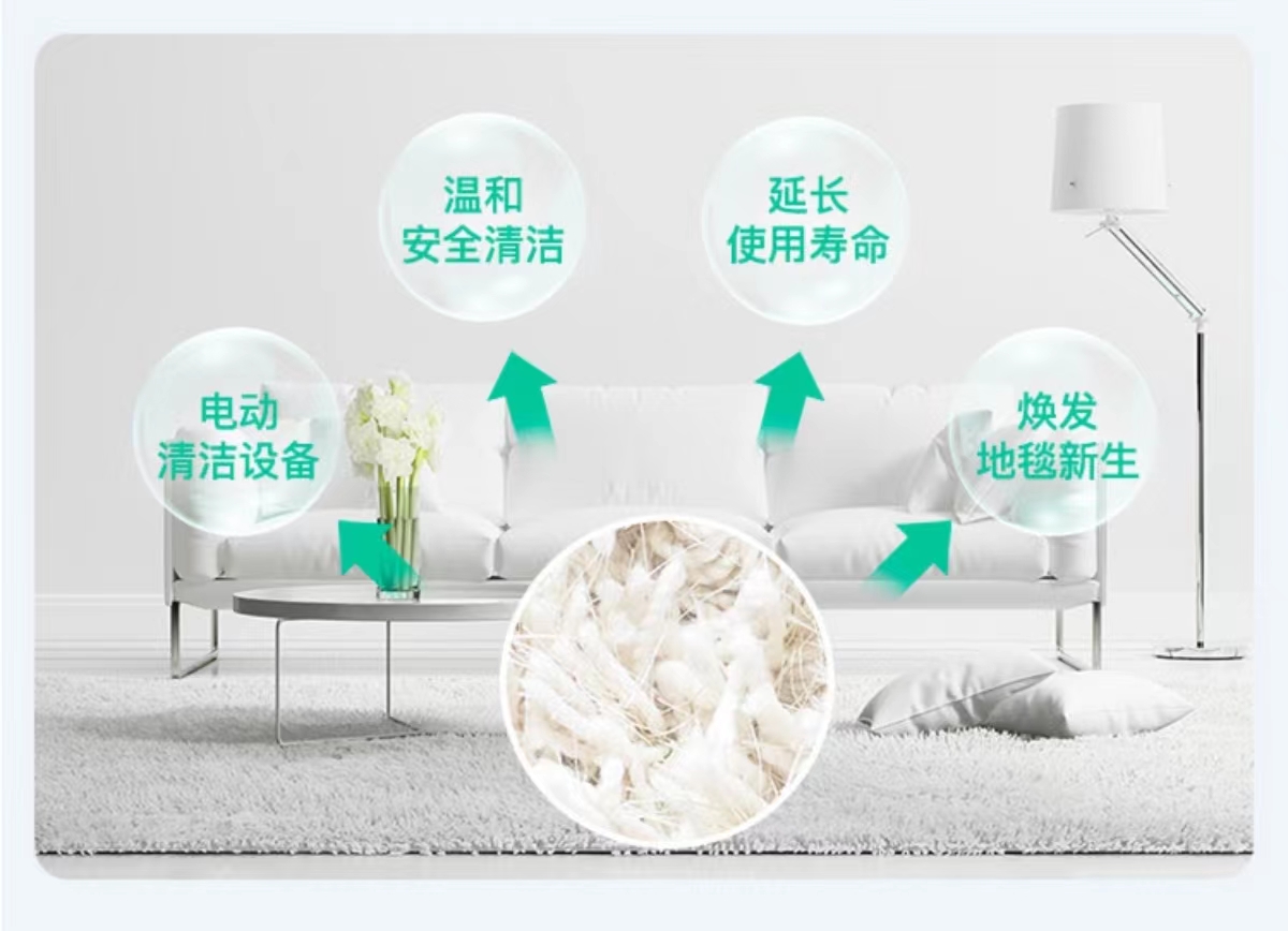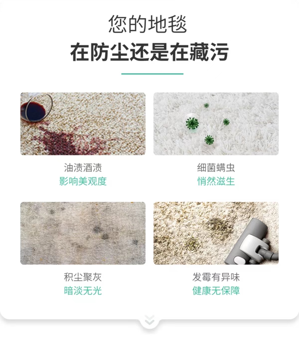 但也因为地毯的特性,在清理时会给我们带来许多不便,且附着在地毯上的污渍经常不能被有效去除。