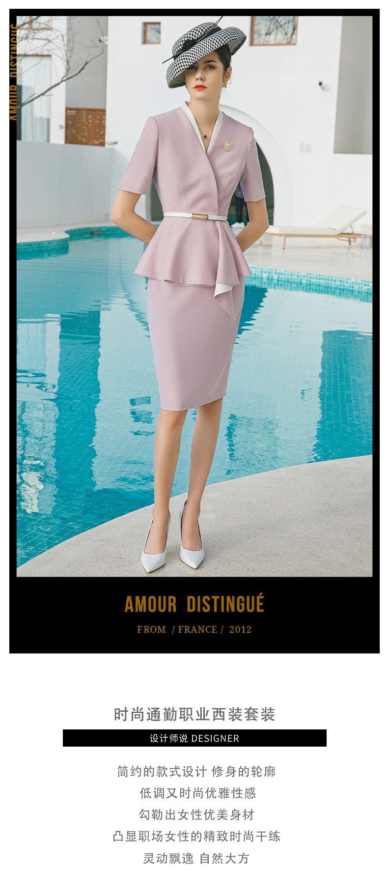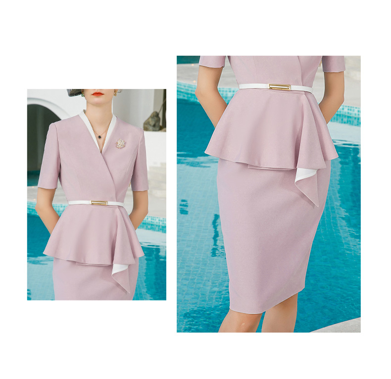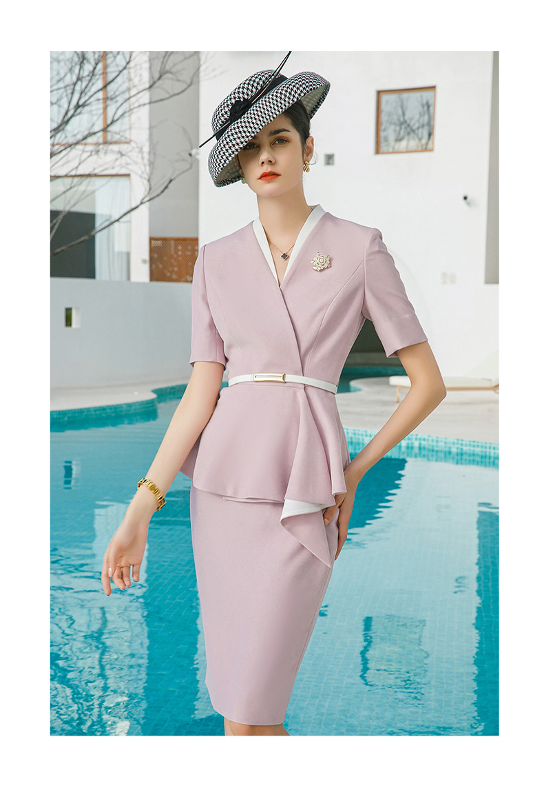 IWY/紫粉色职业套装女西装正装气质女神范通勤商务包臀裙两件套夏CS1544
