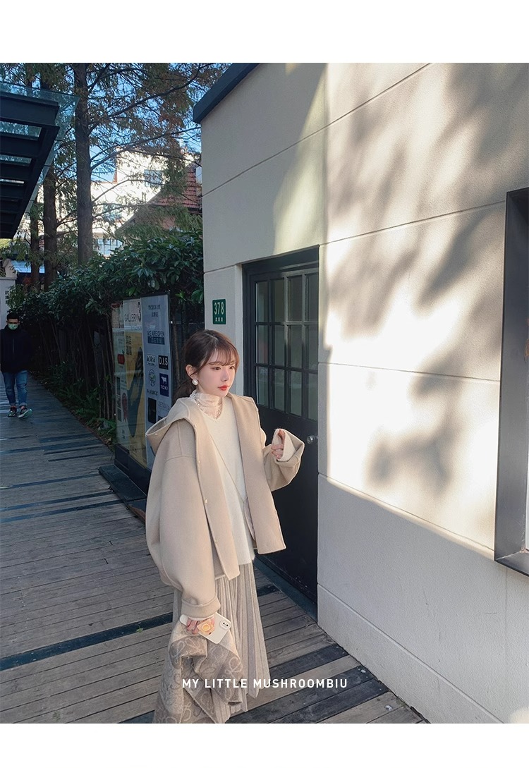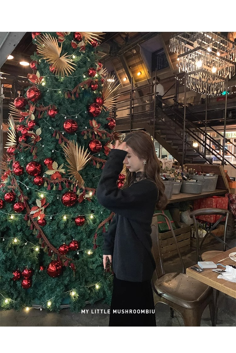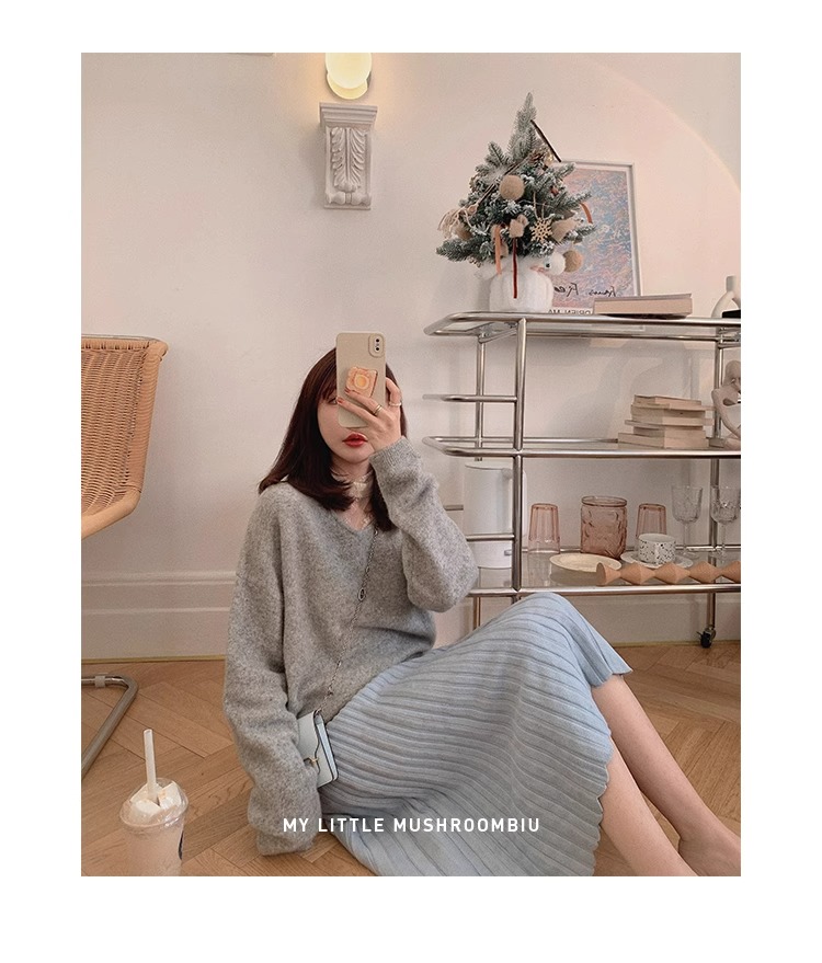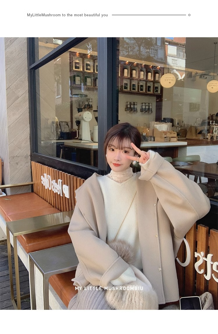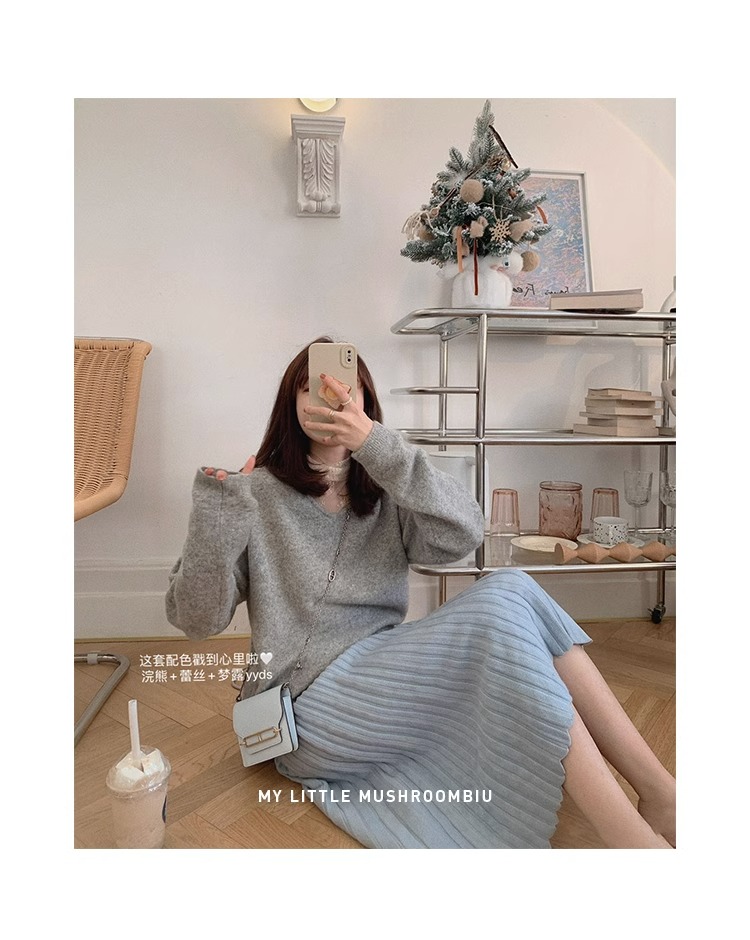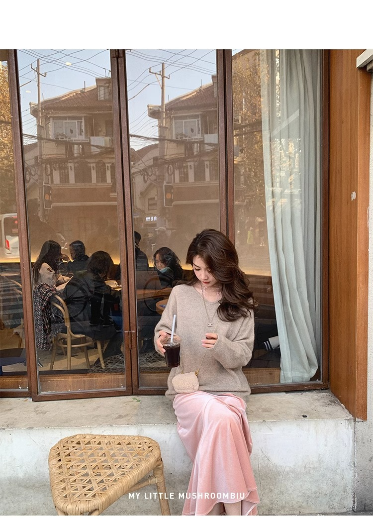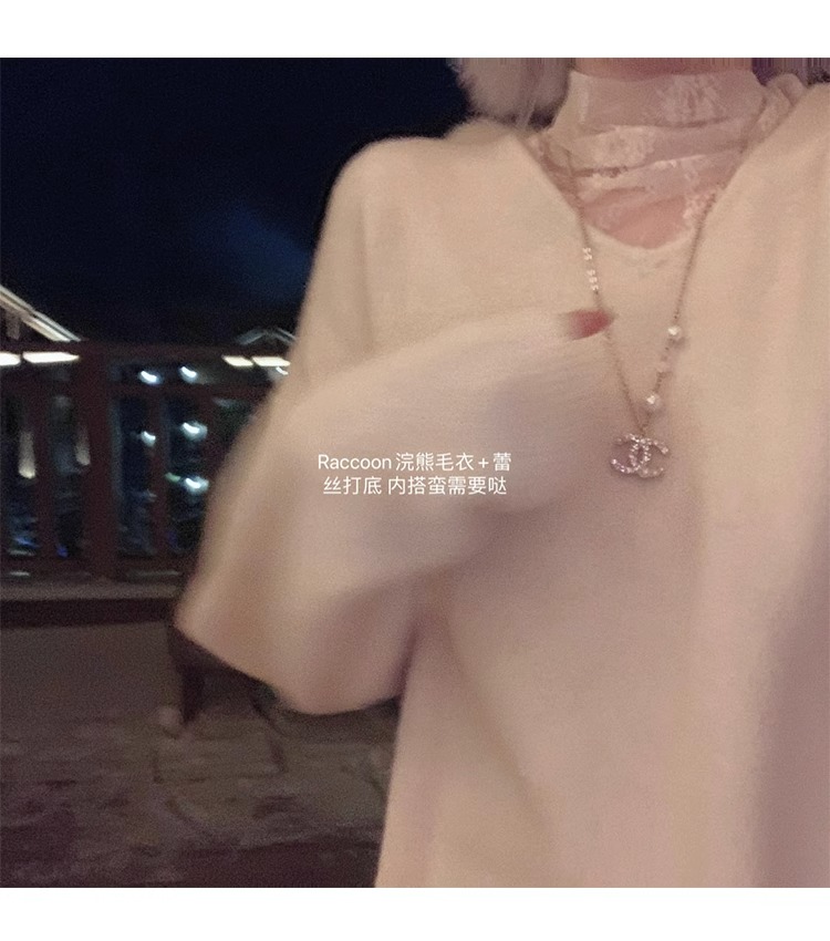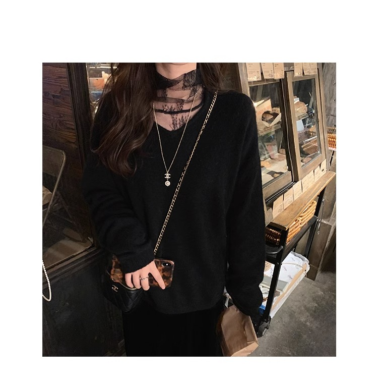 S码特价 金蘑菇菇【浣熊蕾丝】法式温柔风纯色宽松百搭v领毛衣