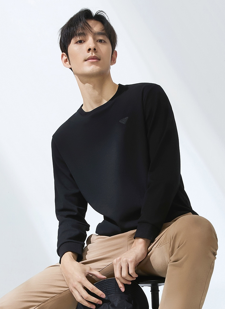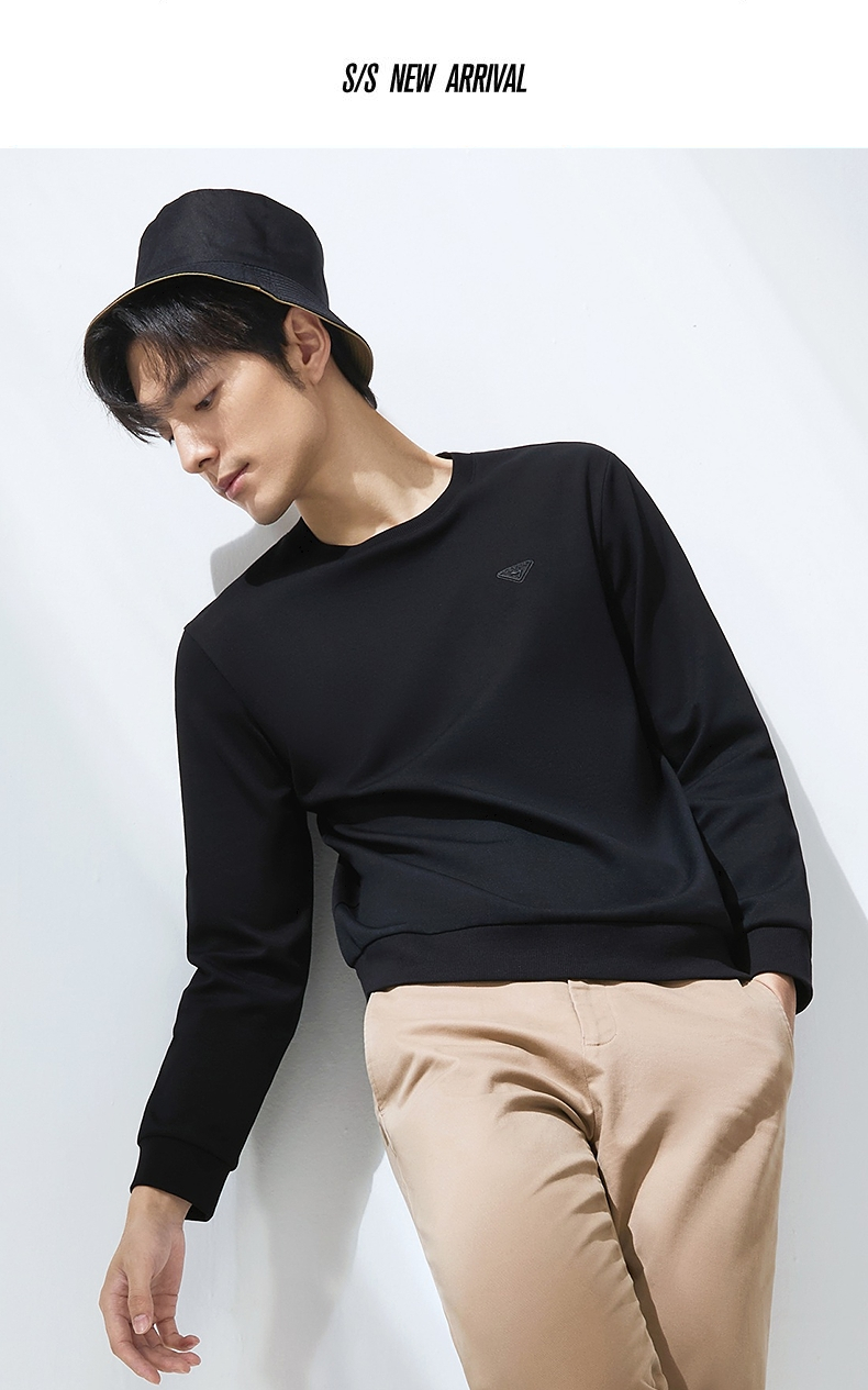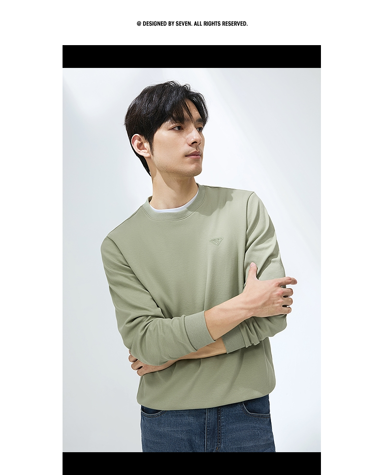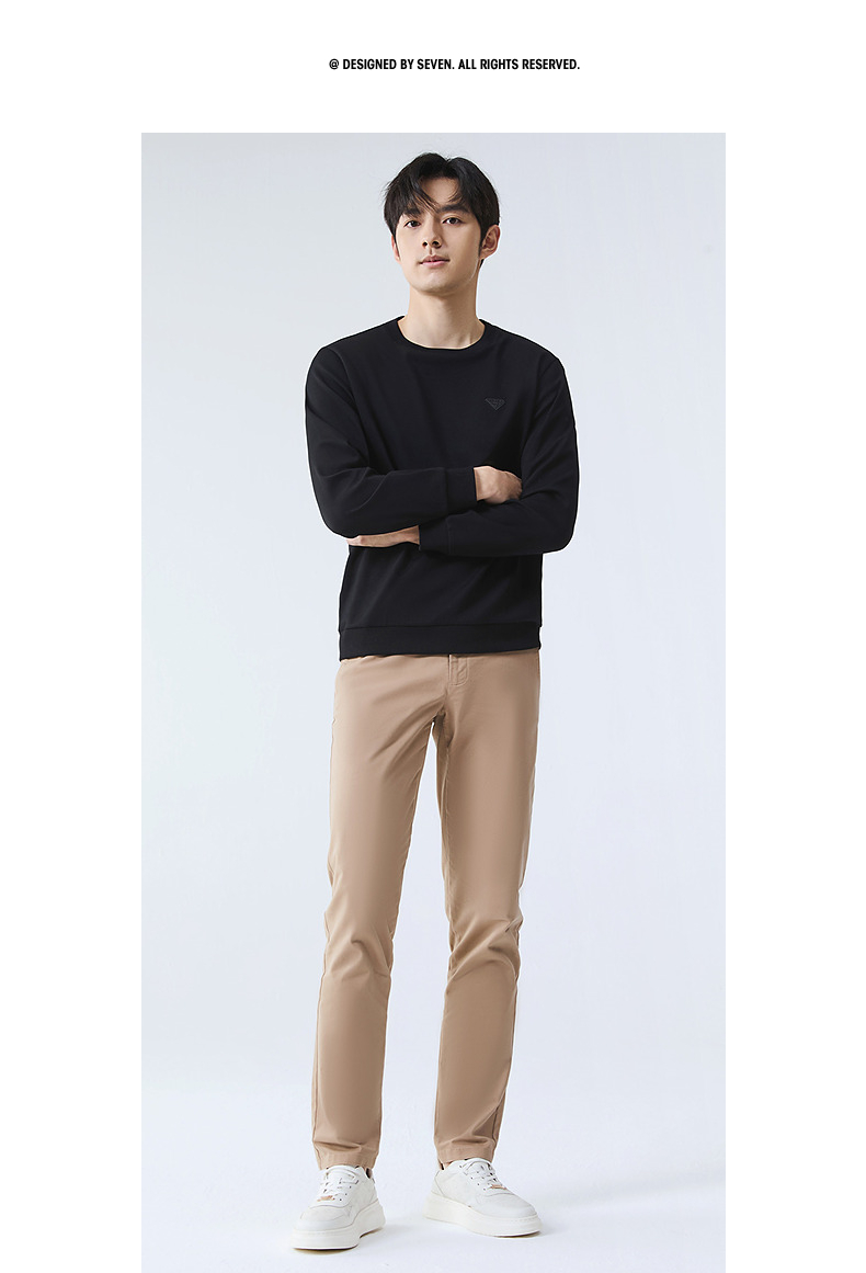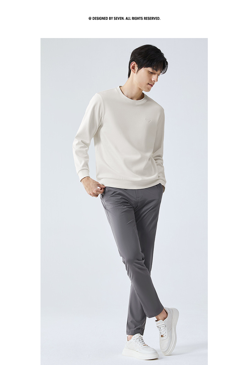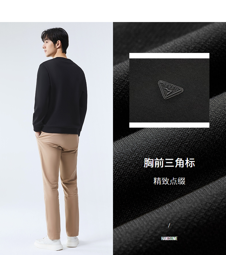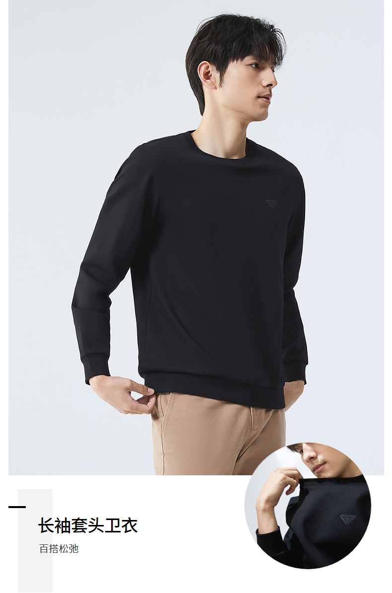 【5A抗菌2A防螨】柒牌圆领卫衣男2025春季新款中青年休闲百搭上衣128W70140