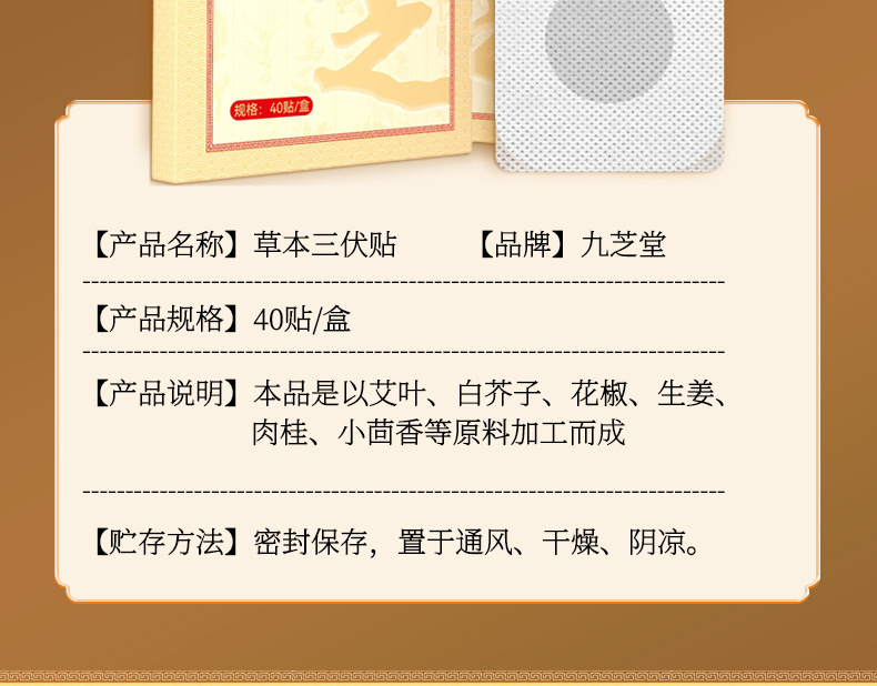三伏天【九芝堂三伏贴】40贴装艾草颈椎穴位贴 夏季温灸艾灸贴