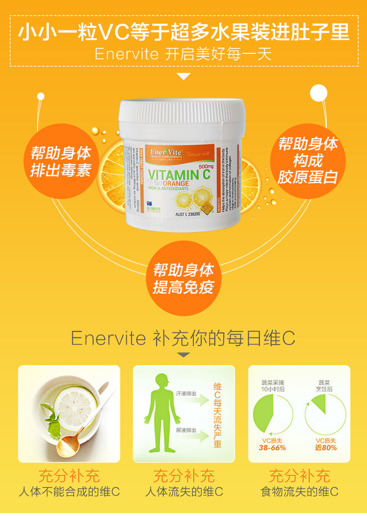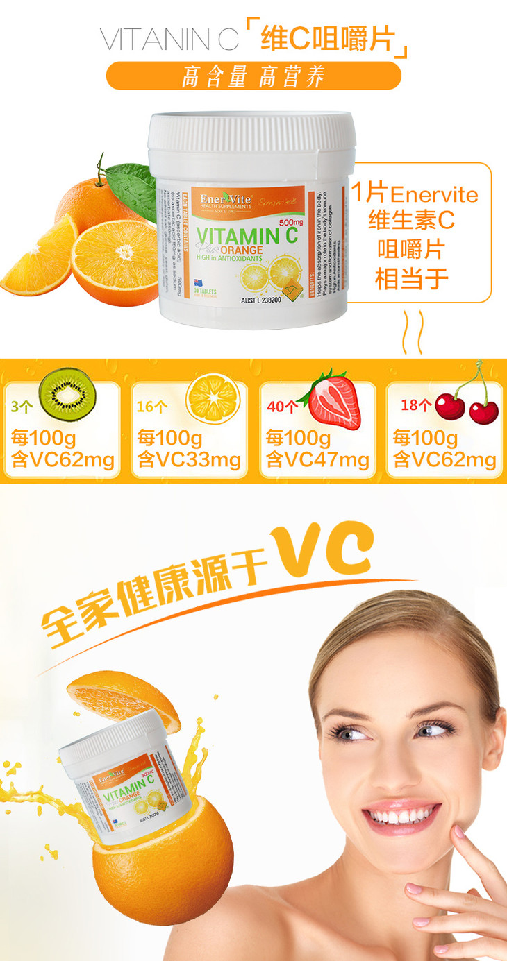 【保税仓】澳洲Enervite澳乐维他 组合(丸60粒+VC30片*2) 商品图0