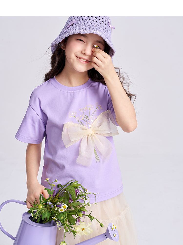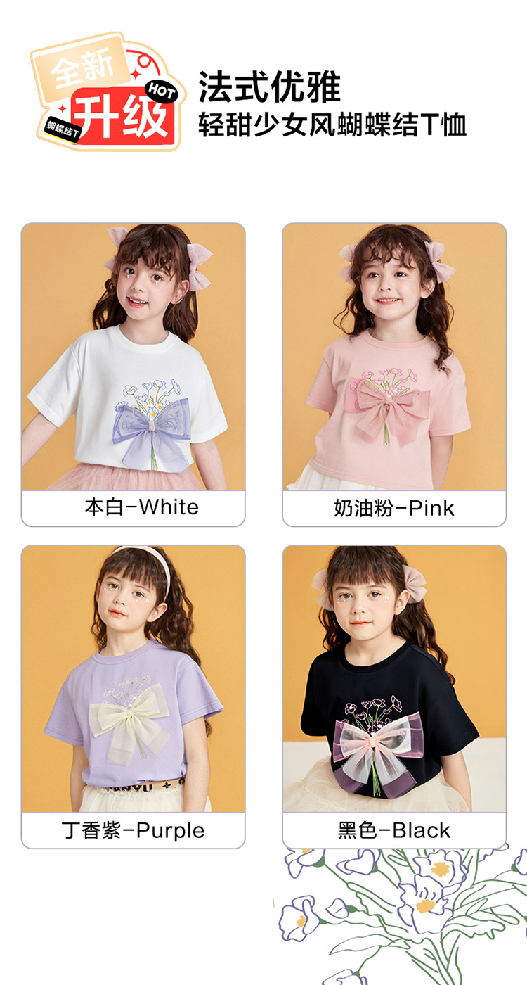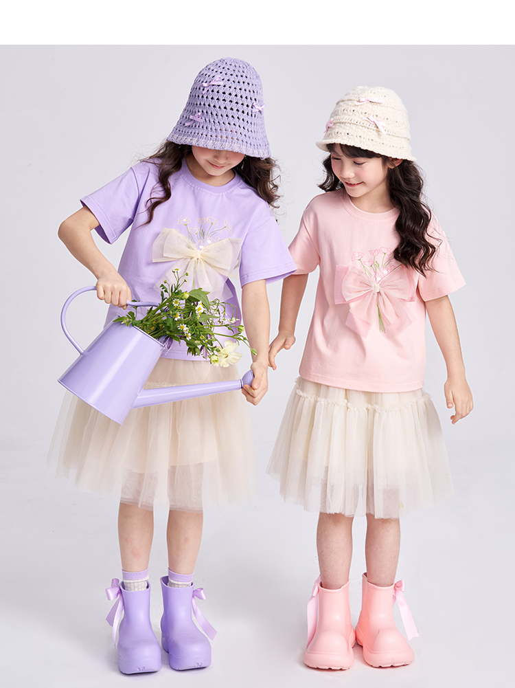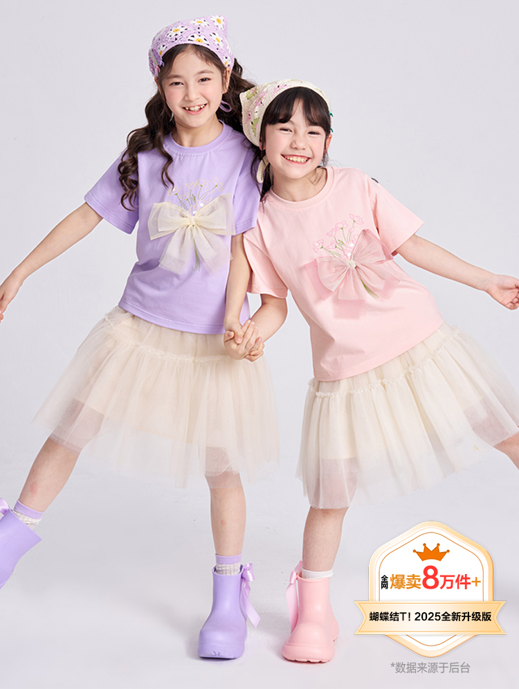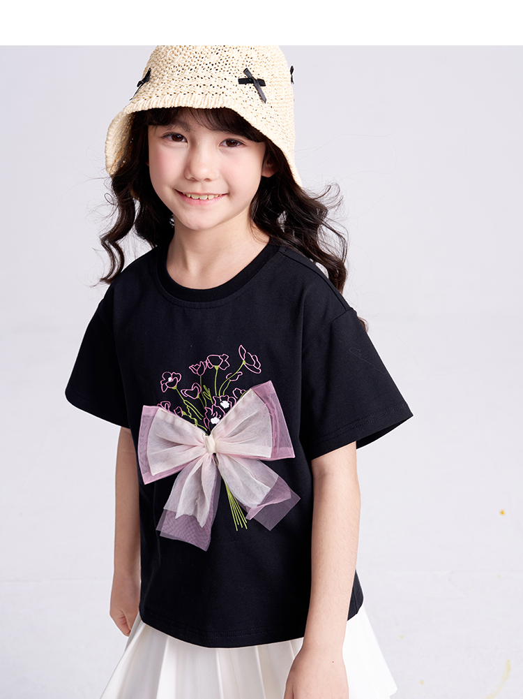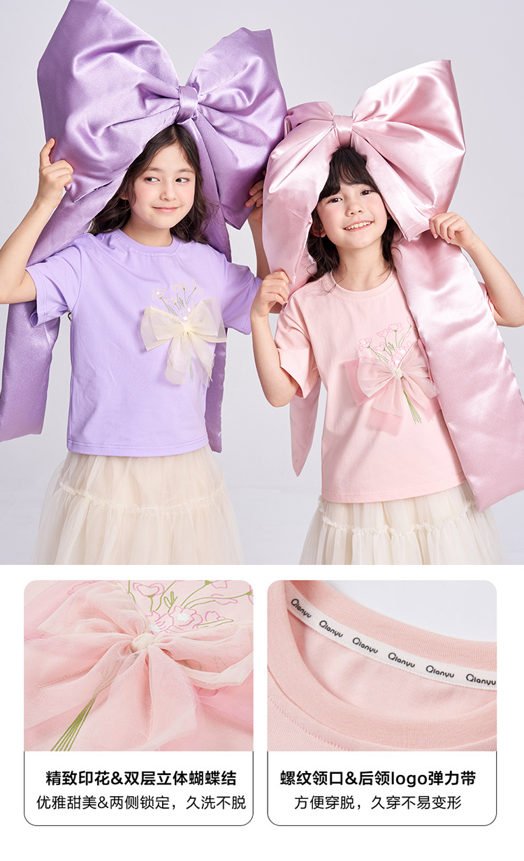 笛莎千与2025夏季新款女童轻甜少女风蝴蝶结T恤