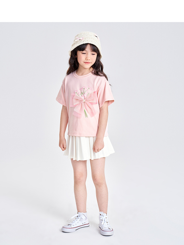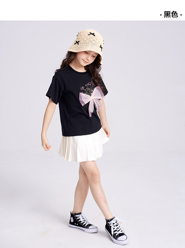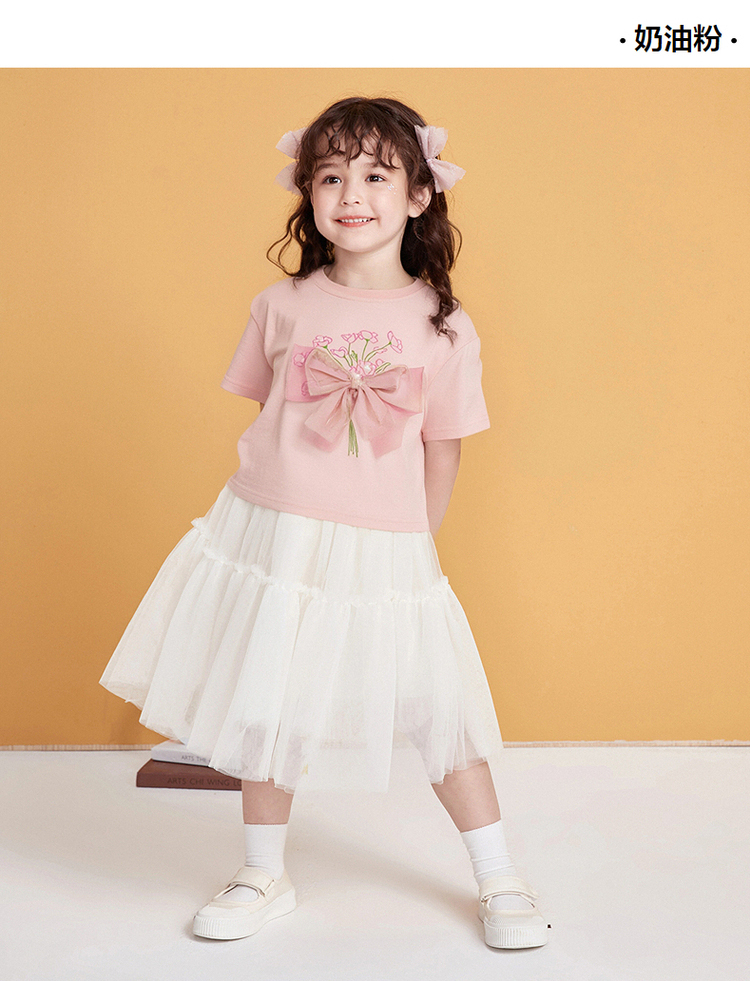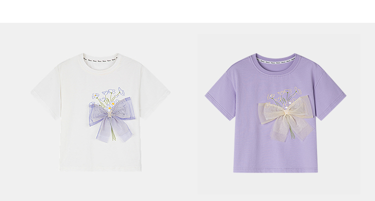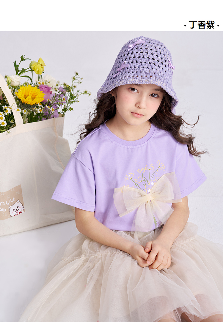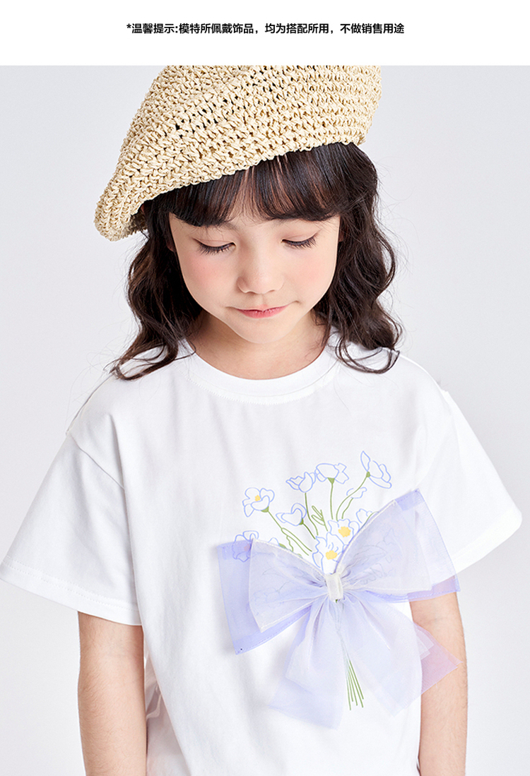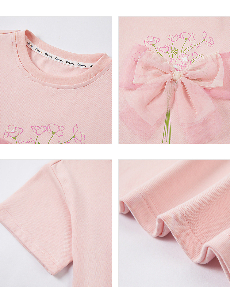 笛莎千与2025夏季新款女童轻甜少女风蝴蝶结T恤