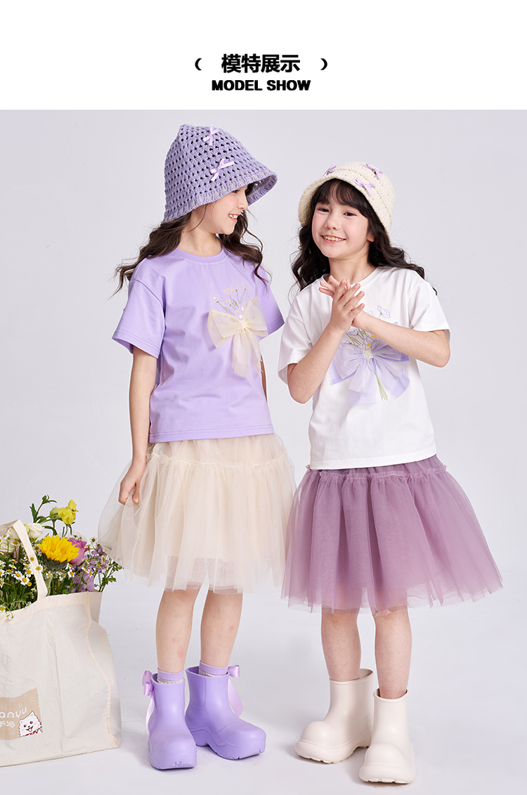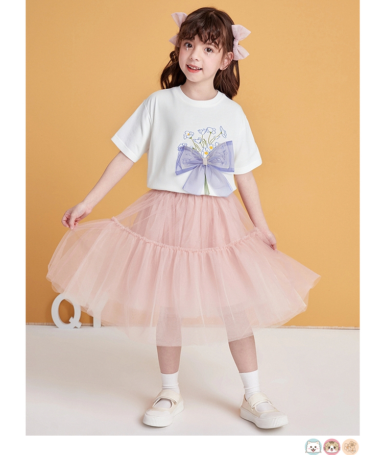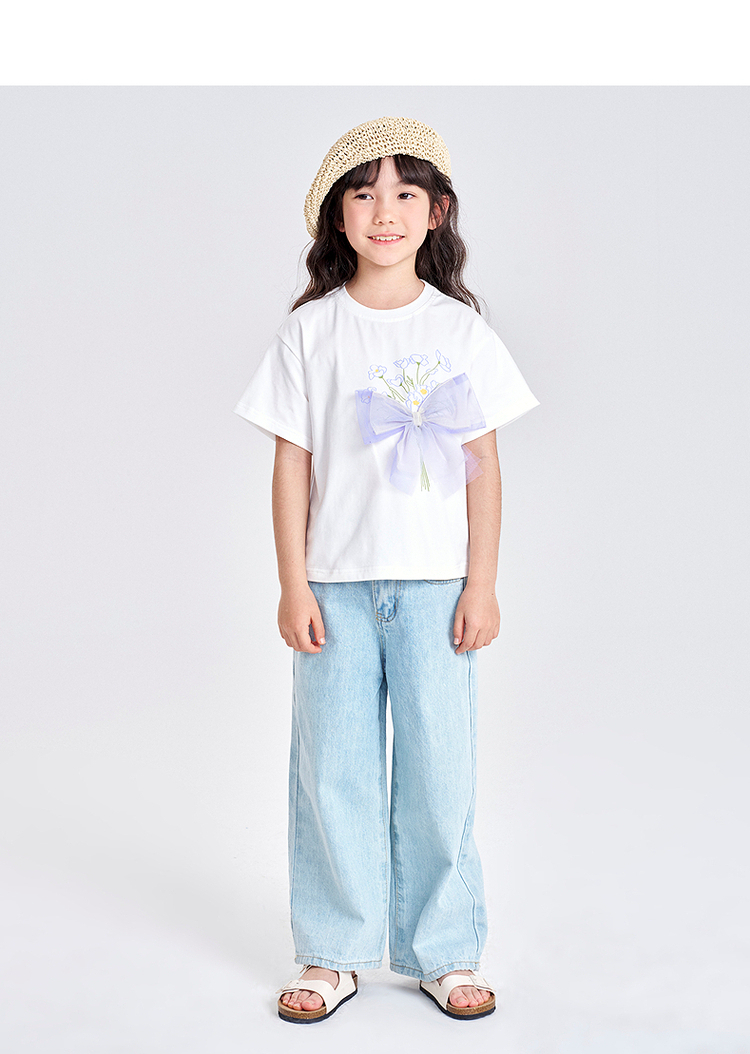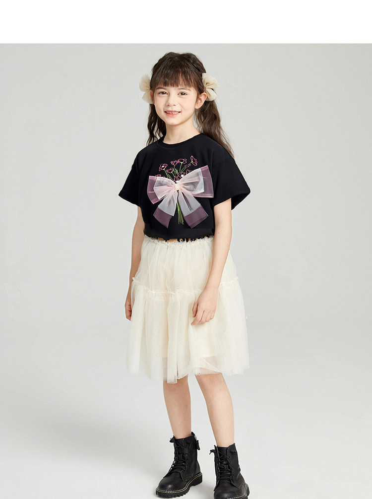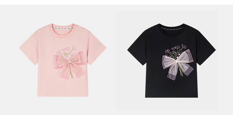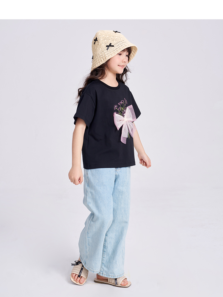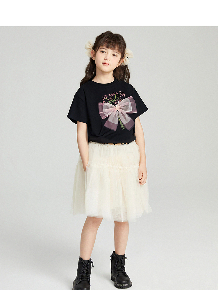 笛莎千与2025夏季新款女童轻甜少女风蝴蝶结T恤
