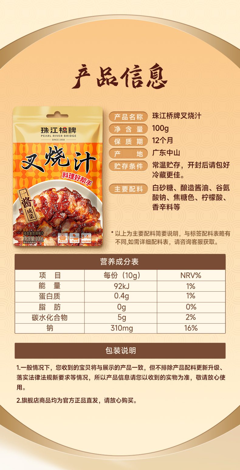 【会员积分兑换专享,请勿原价拍!】珠江桥牌 叉烧汁100g×3袋