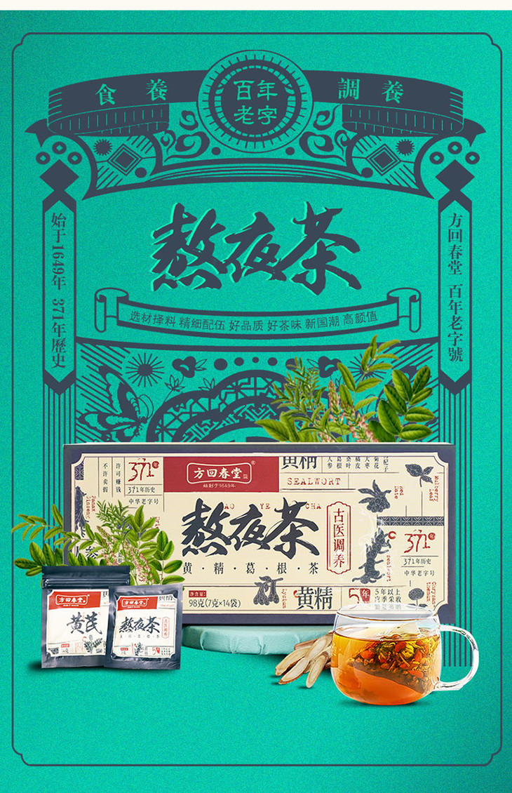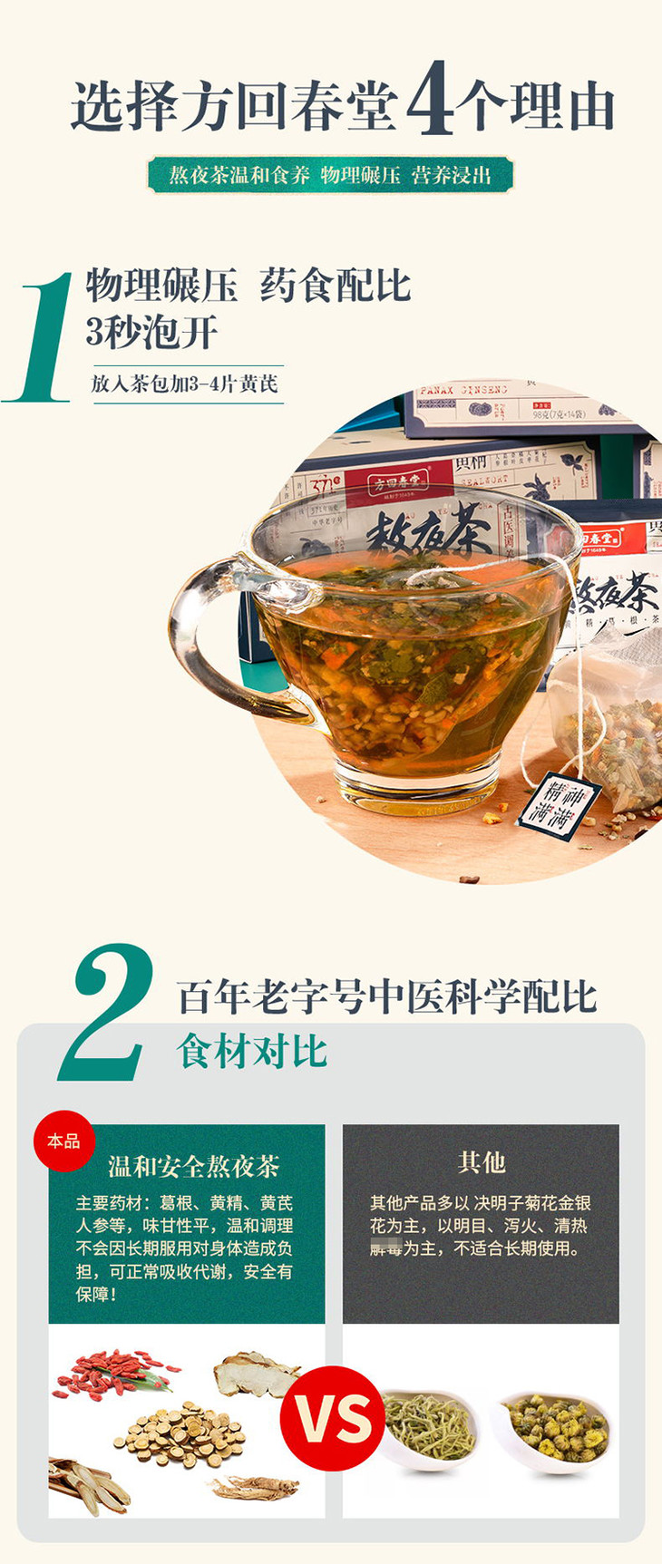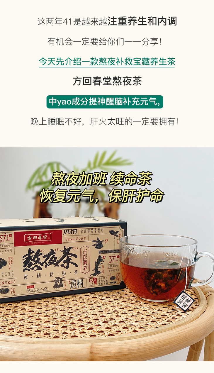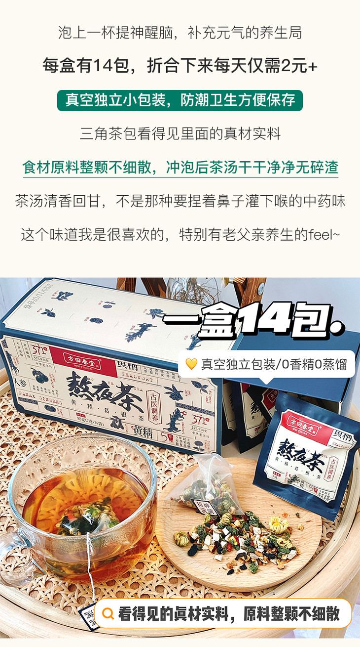 方回春堂熬夜茶 7g*14袋 人参黄精葛根菊花熬夜养生茶花茶肝养生