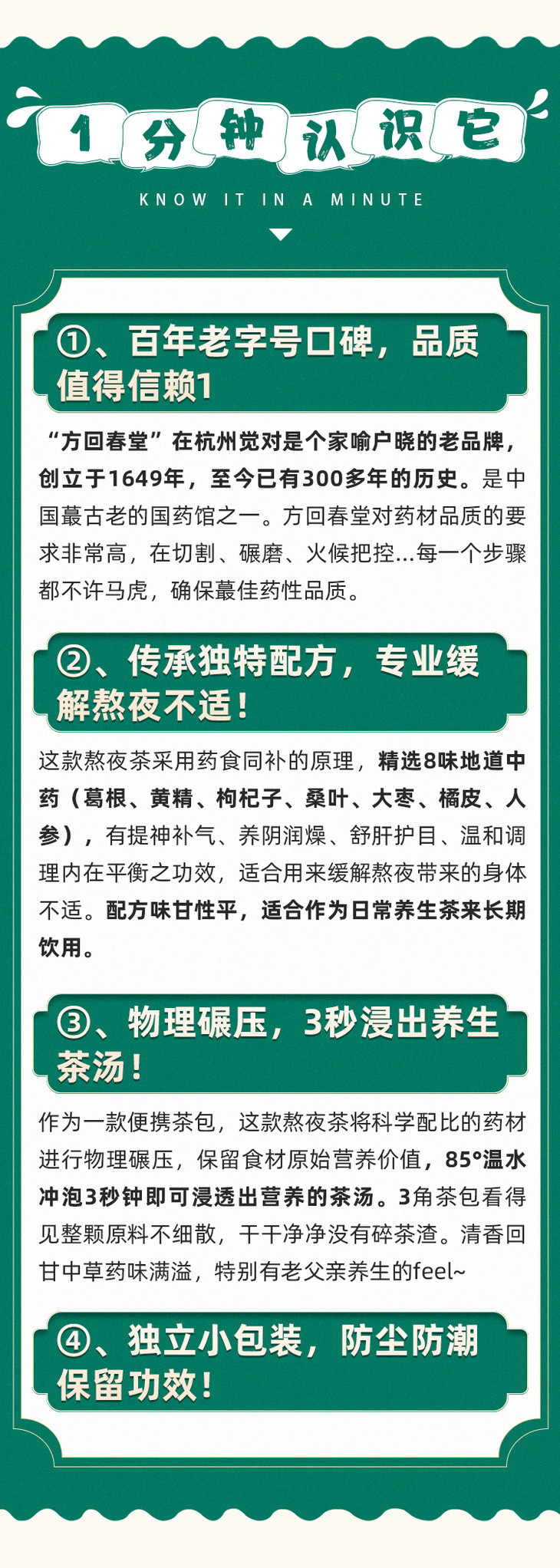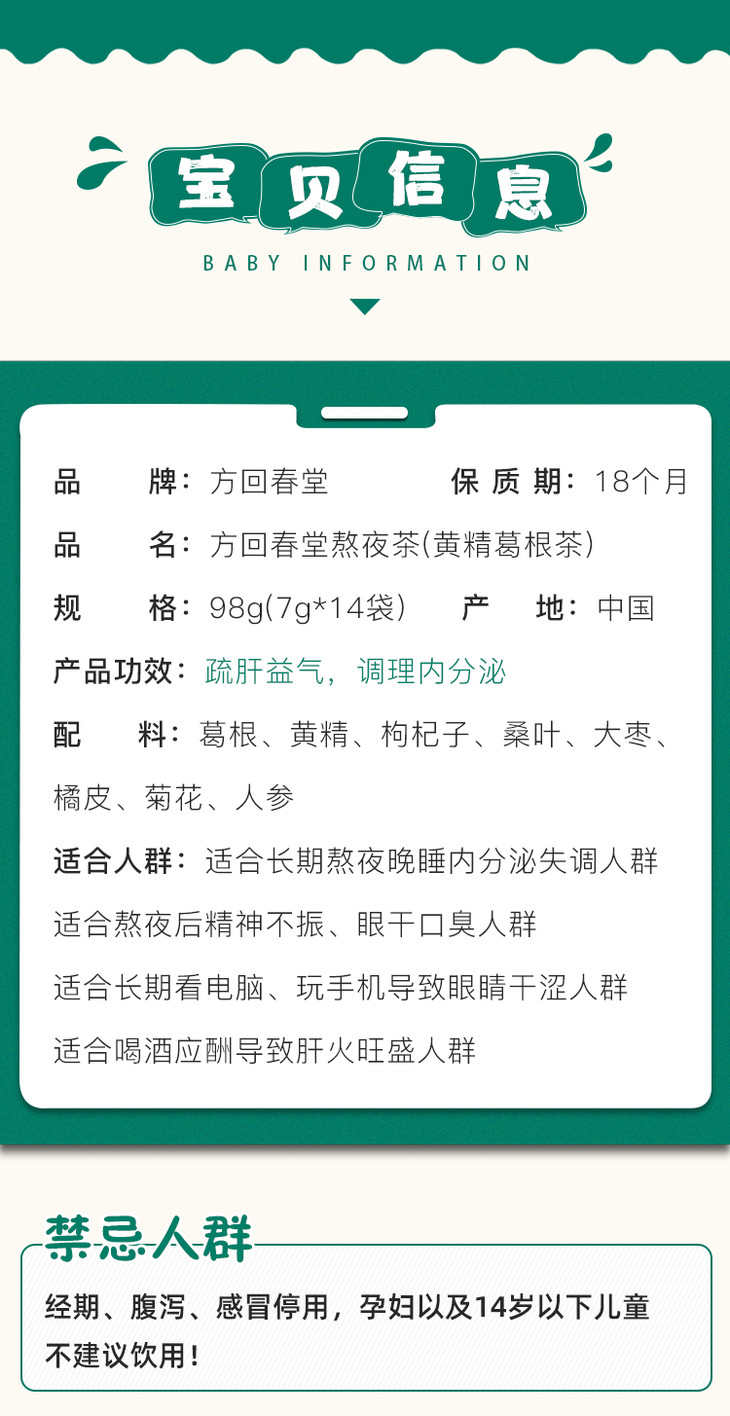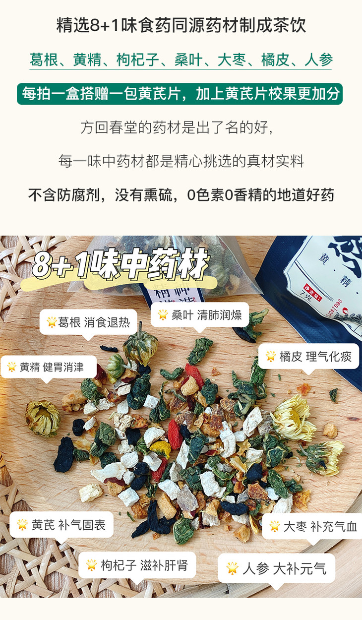 方回春堂熬夜茶 7g*14袋 人参黄精葛根菊花熬夜养生茶花茶肝养生
