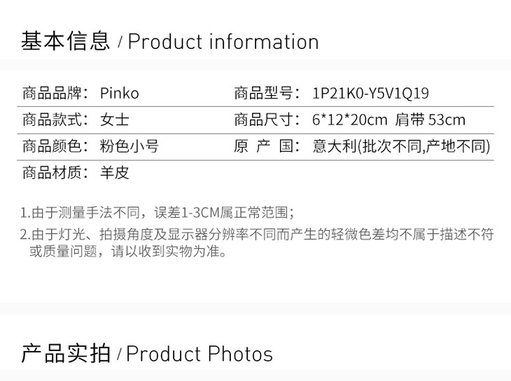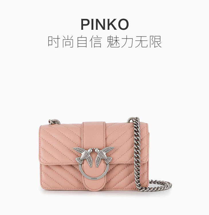 【香港直邮】Pinko 品高 女士Mini Love系列淡粉色羊皮斜挎包 1P21K0-Y5V1Q19