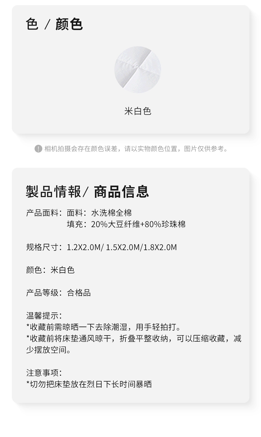 【立称床垫】纯棉立称床垫(床褥)简约床垫加厚保暖床垫