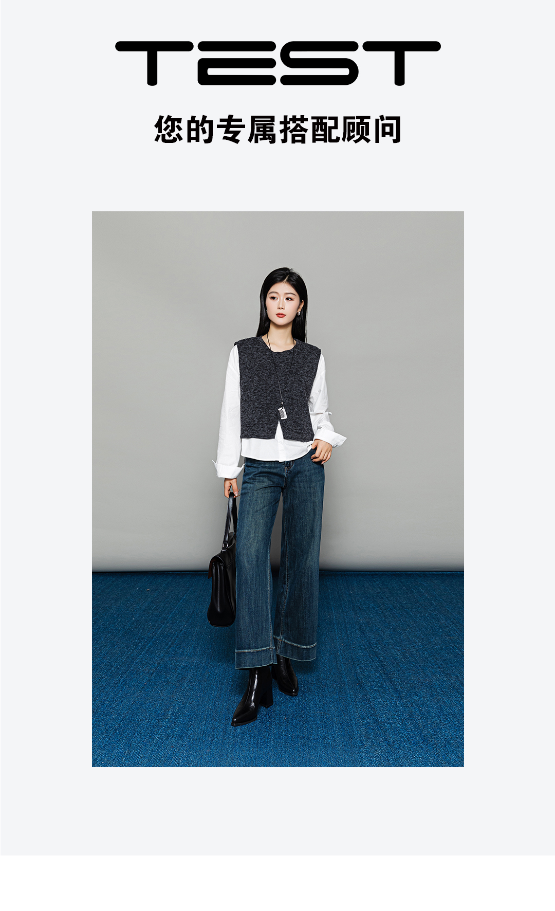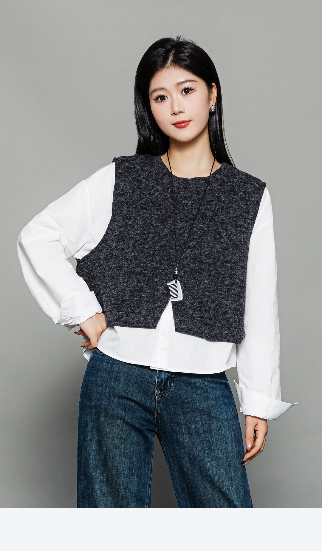 冬上新假两件设计感针织马甲拼接衬衣1254071