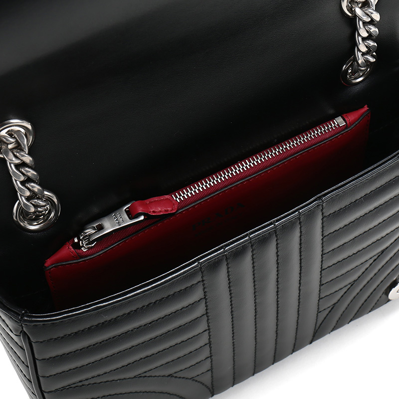 ![]() | 品牌:PRADA/普拉达 产地:意大利等国(批次不同,产地不同) 款式:女士 颜色:黑色 材质:皮革 产品结构:吸扣翻盖开合,内置1个拉链贴袋,1个贴袋,外置1个贴袋 产品尺寸:宽约22cm,高约14cm,厚约7cm,肩带长约110cm,宽约1cm,手提高约28cm