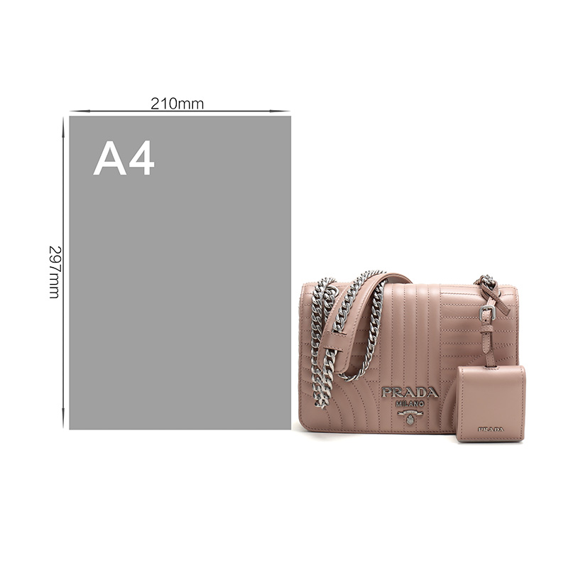 ![]() | 品牌:PRADA/普拉达 产地:意大利等国(批次不同,产地不同) 款式:女士 颜色:裸色 材质:皮革 产品结构:吸扣翻盖开合,内置1个拉链贴袋,1个贴袋,外置1个贴袋 产品尺寸:宽约22cm,高约14cm,厚约7cm,肩带长约110cm,宽约1cm,手提高约28cm