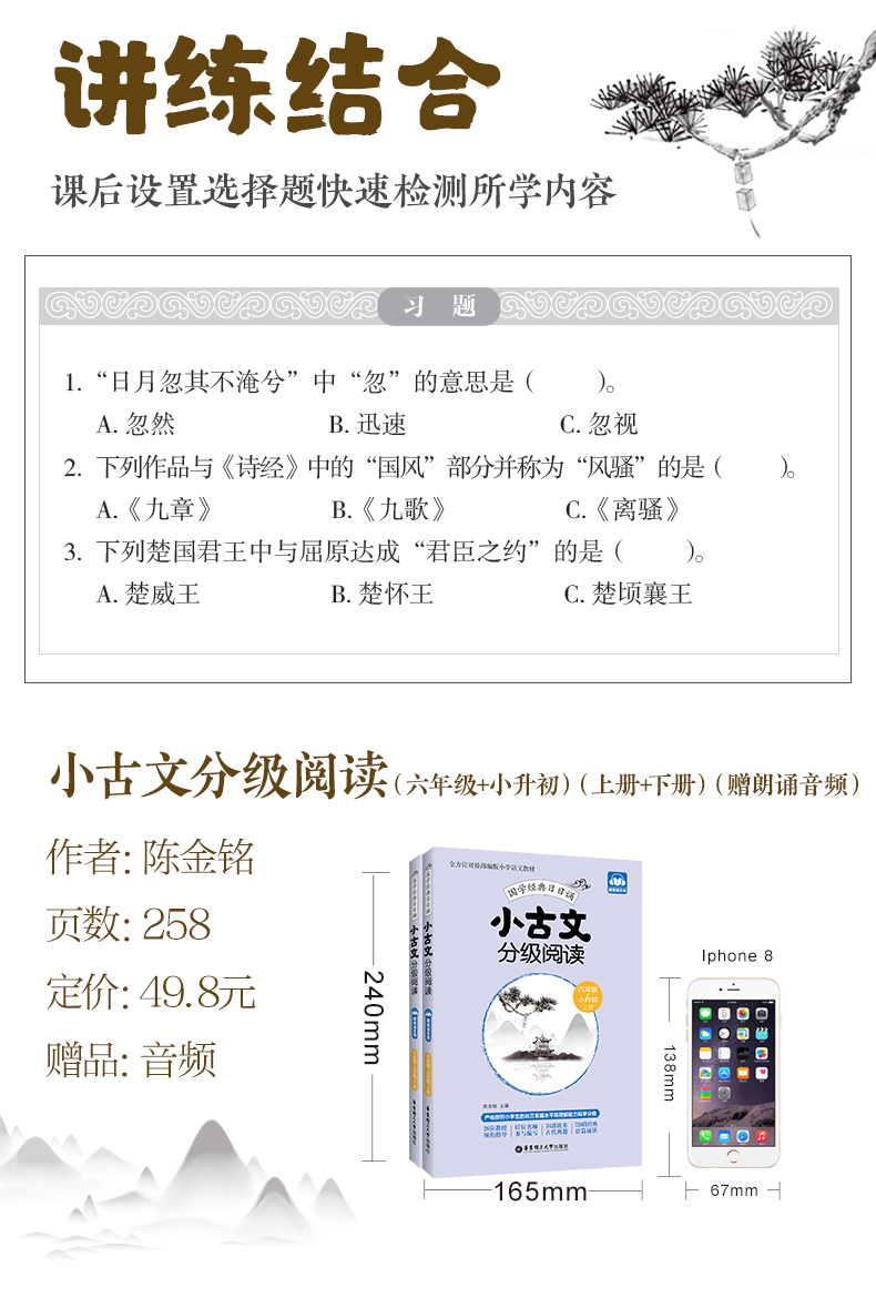 小古文分级阅读 六年级+小升初/6年级 上下册 国学经典日日诵(赠朗诵音频)六年级+小升初年级古文专项训练 华东理工大学出版社