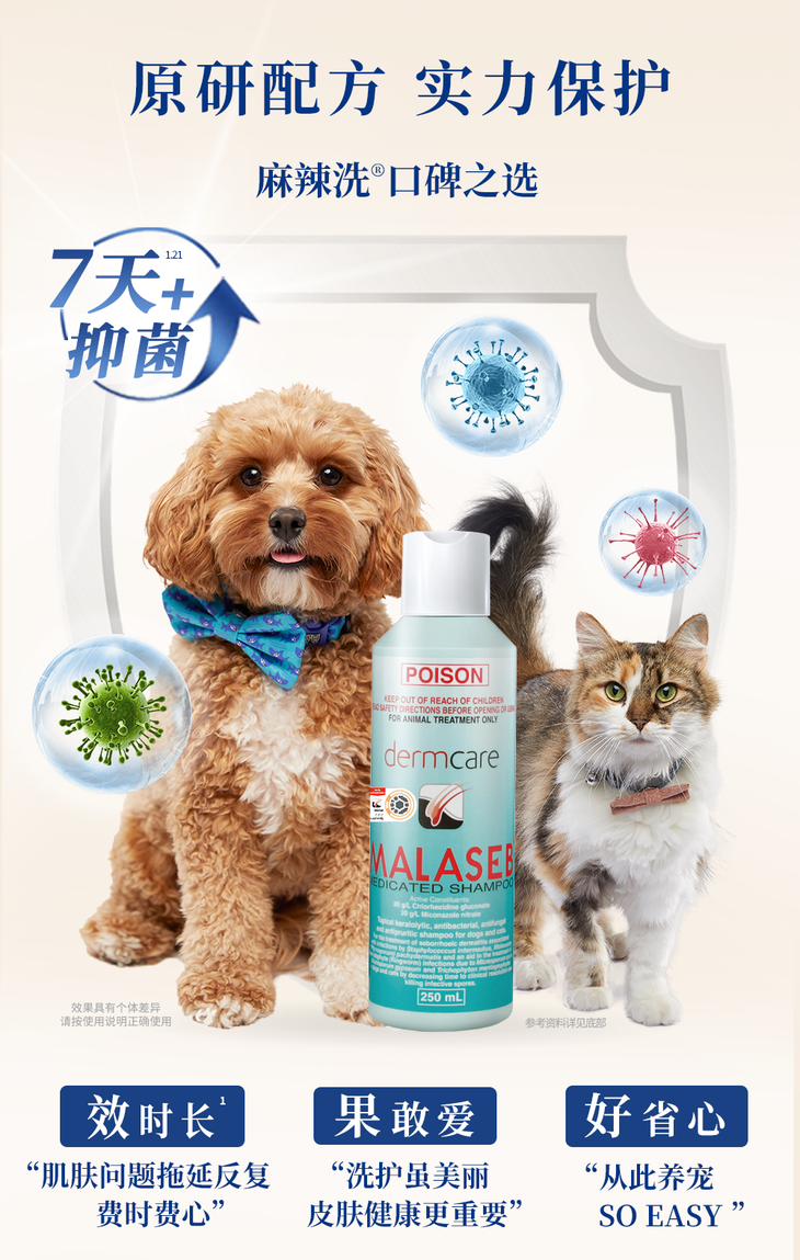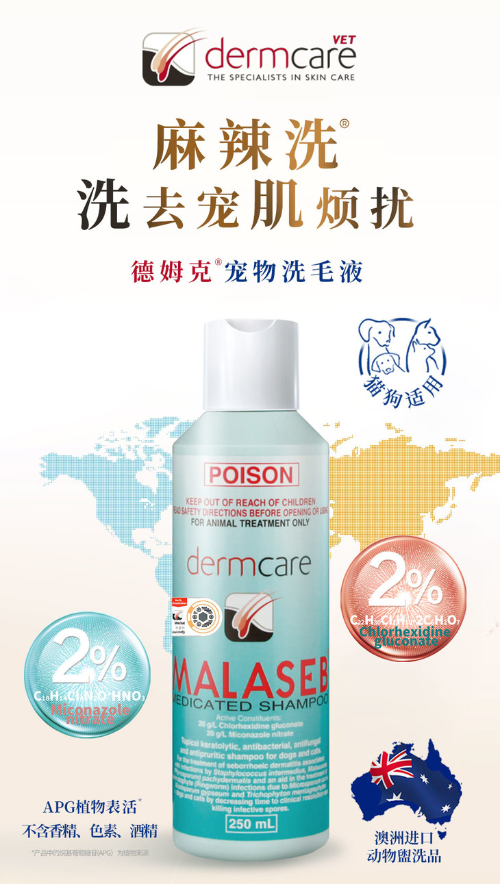 澳洲进口药浴麻辣洗MALASE真菌细菌螨虫皮肤病 猫藓犬猫通用皮肤病感染沐浴正品防伪香波
