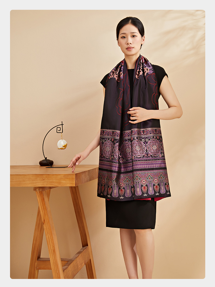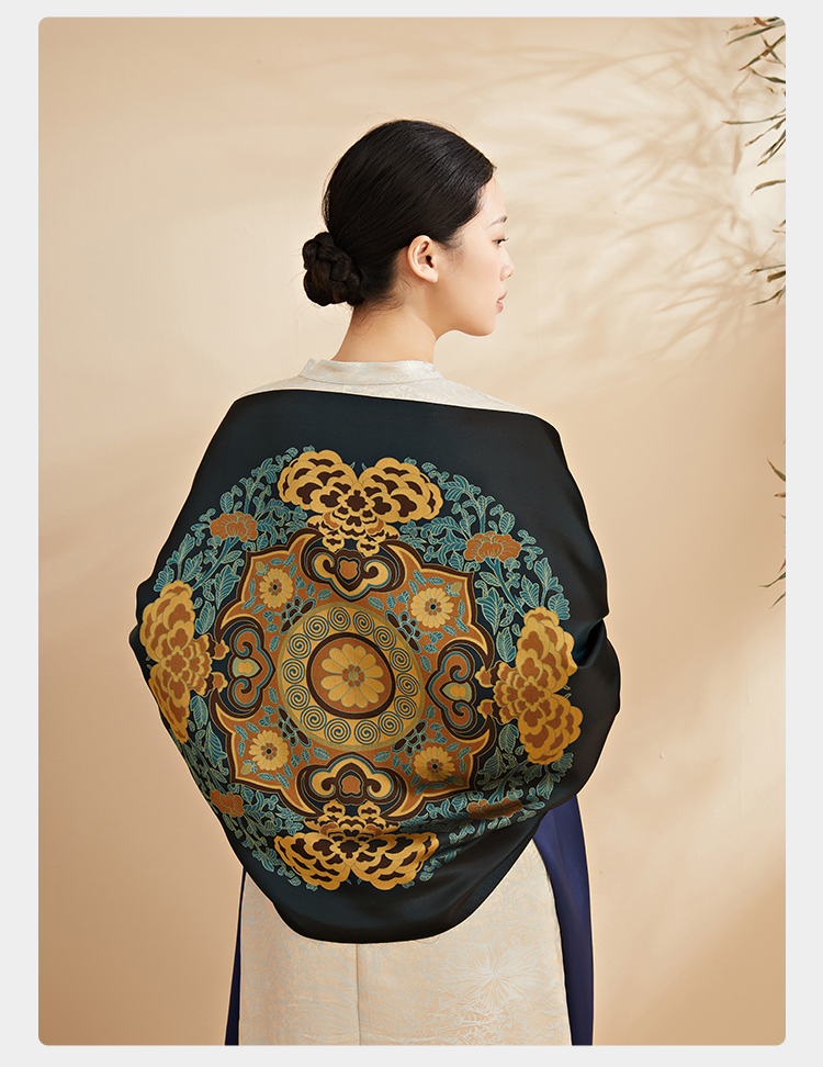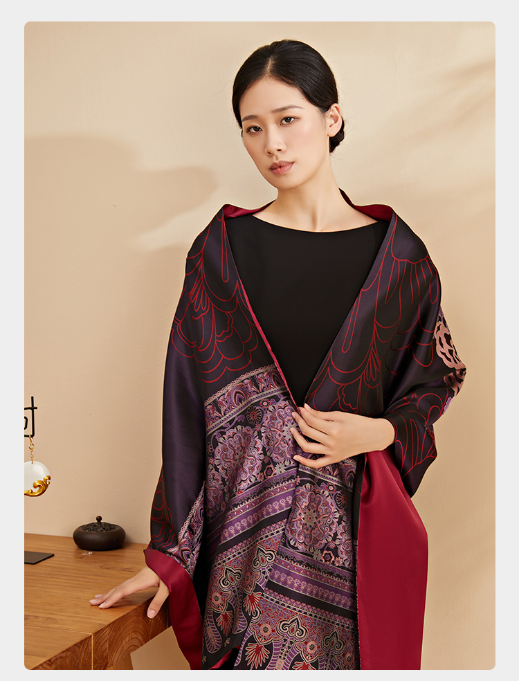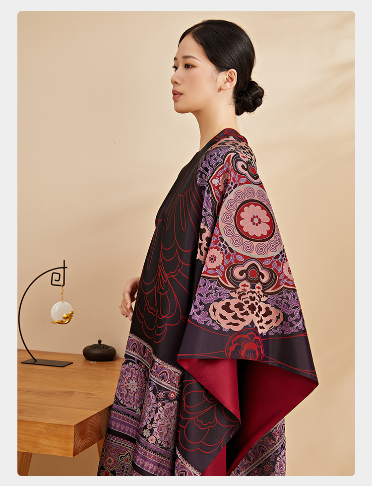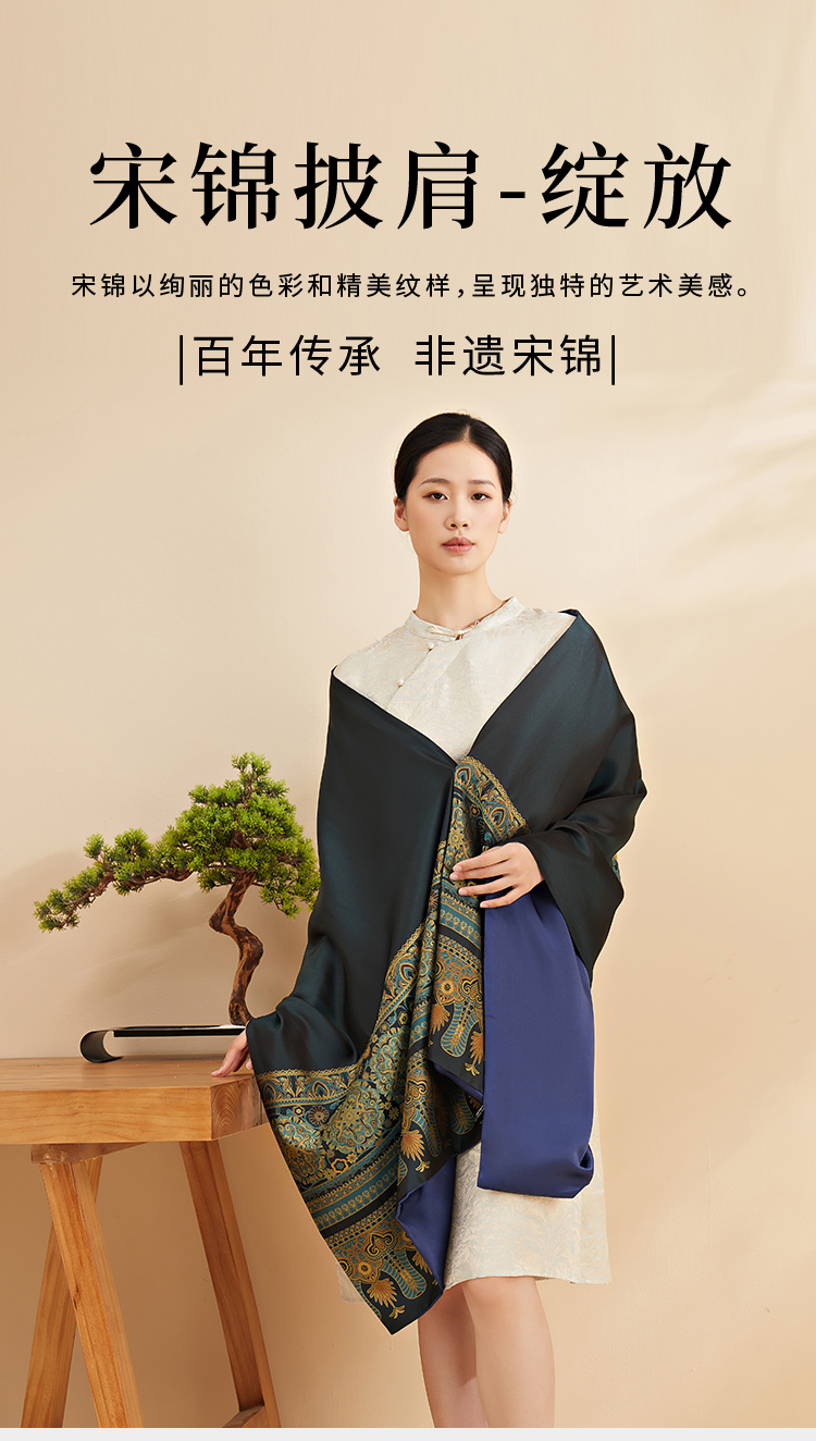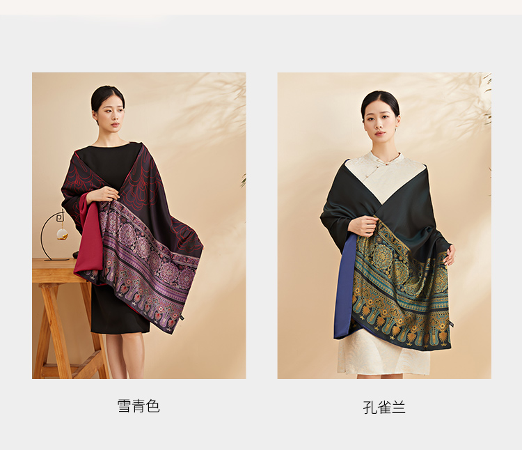 SAINTJOY/上久楷宋锦双面披肩 绽放·雪青色 孔雀兰CJ13265