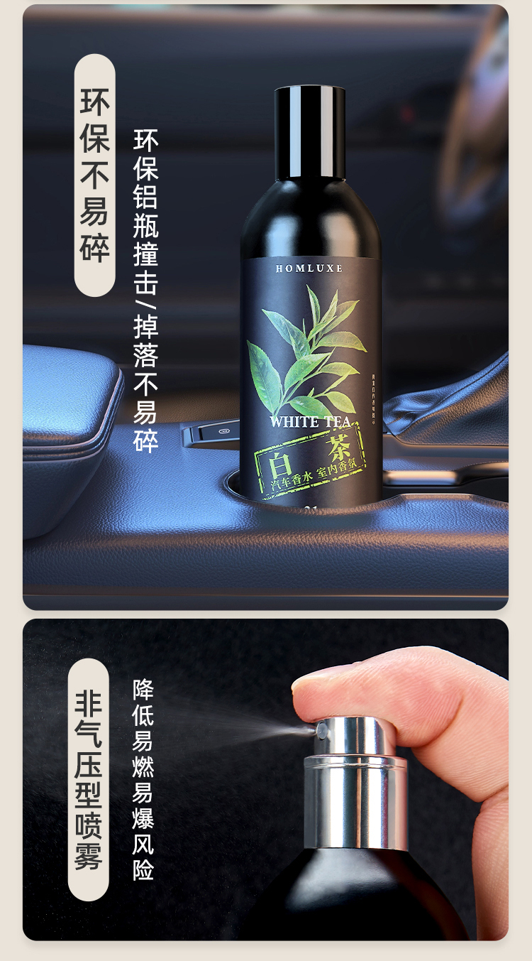 好莱舒汽车香水 无酒精安全除臭车载香水室内香氛车用白茶香味100ml