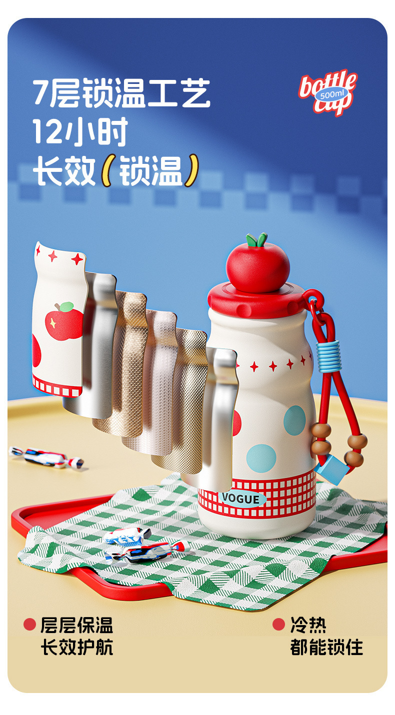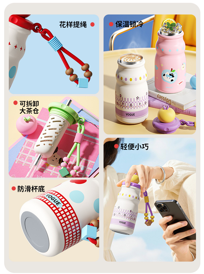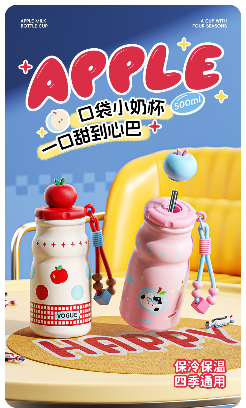 【萌趣图案小巧可爱❗️茶水分离保温锁冷】新款316不锈钢保温杯高颜值女学生随行杯吸管杯卡通可爱苹果杯。jb