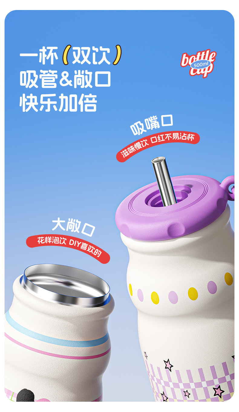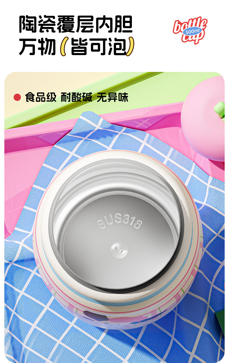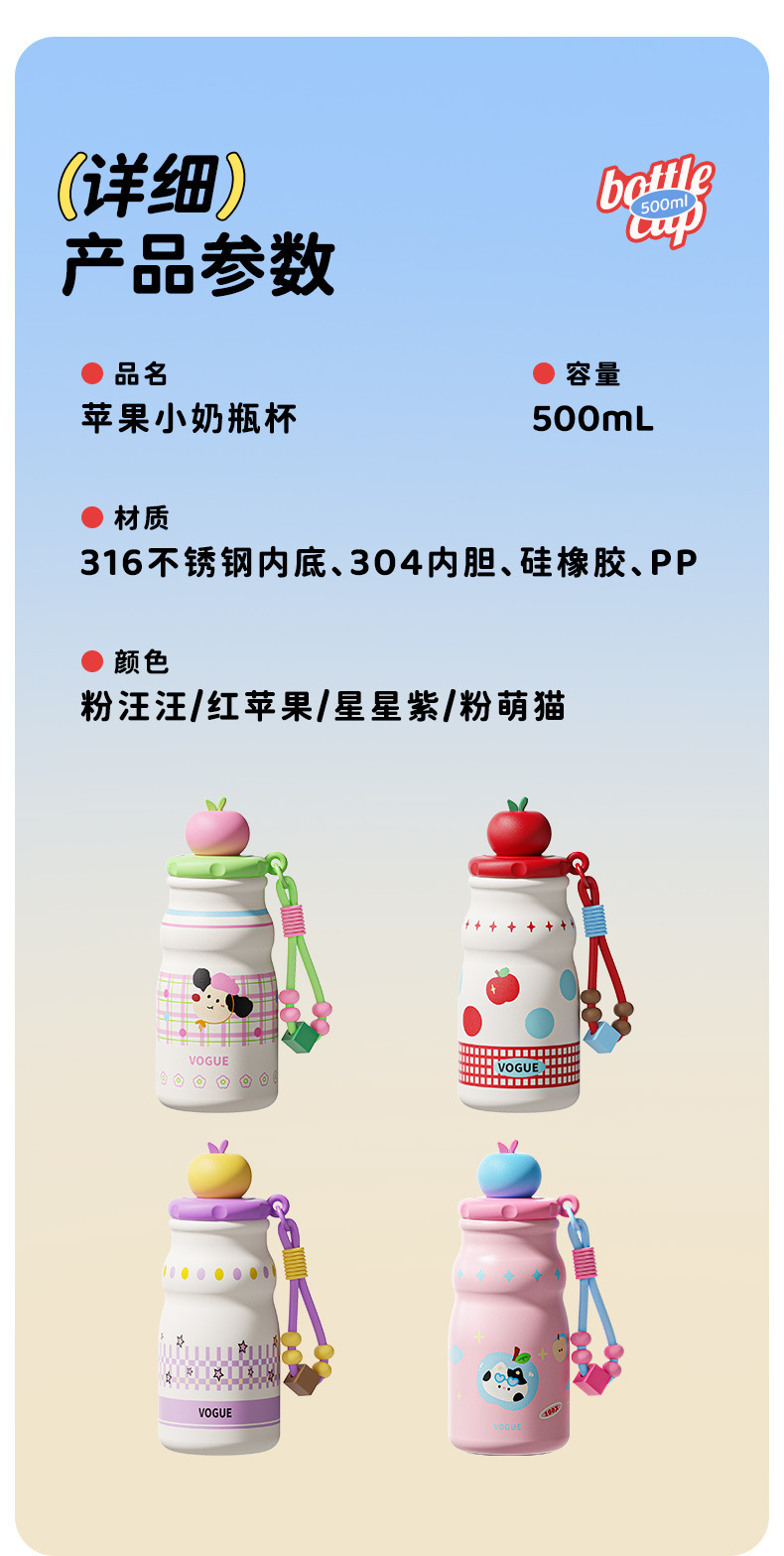 【萌趣图案小巧可爱❗️茶水分离保温锁冷】新款316不锈钢保温杯高颜值女学生随行杯吸管杯卡通可爱苹果杯。jb