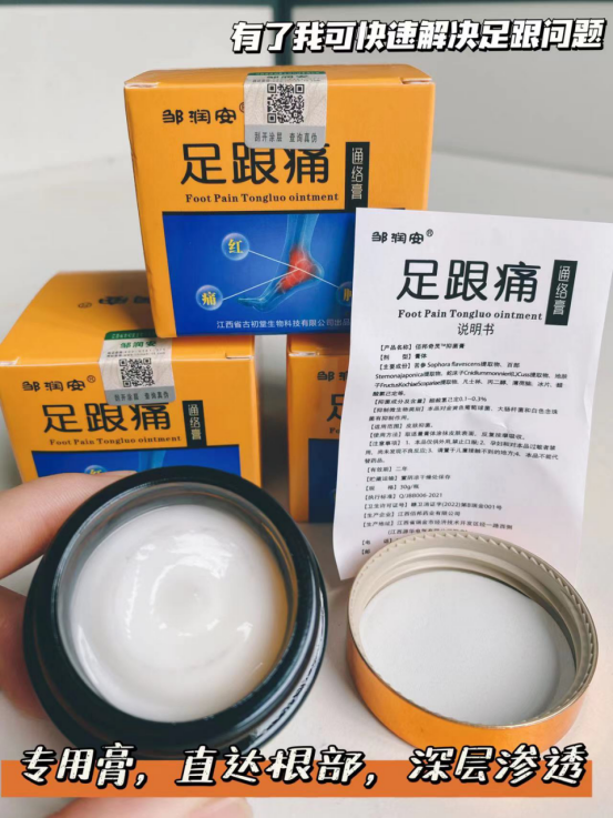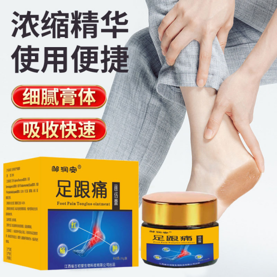 1.借助强渗透力的小分子快速进入滑膜组织使关节液平衡,并促进局部肿胀积液排出从而调整局部的受力不平衡,缓和足跟疼痛。2.跟腱炎、筋膜炎、足骨刺等等足跟痛的病症都可以用它去改善,是足跟疼痛问题患者的福音!3.邹润安足跟痛通络膏没有副作用,无依赖性,不会对身体产生损害和传统针灸、理疗、牵引相比又更省钱而且自己在家就能搞定,花费也更少