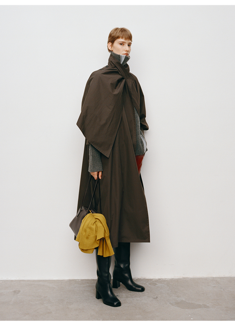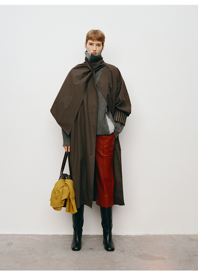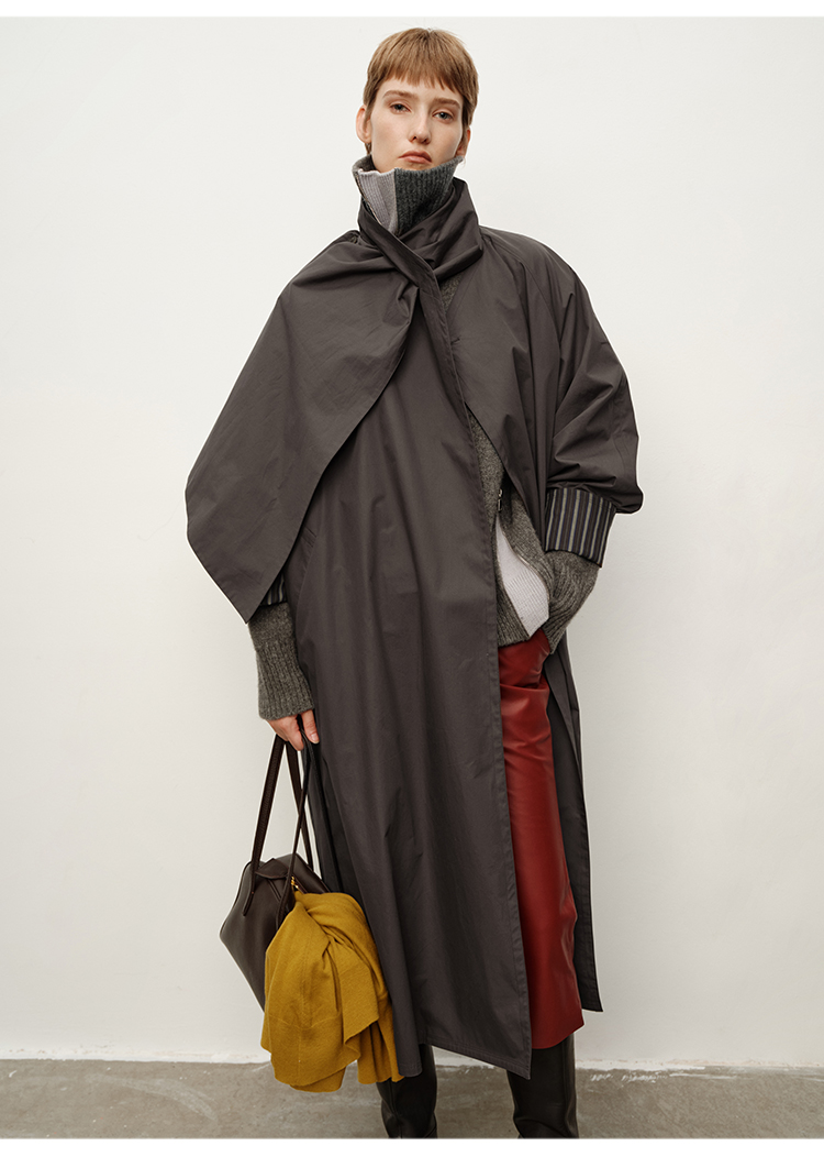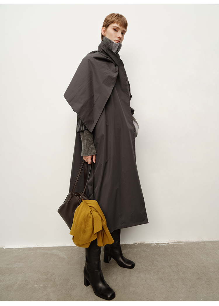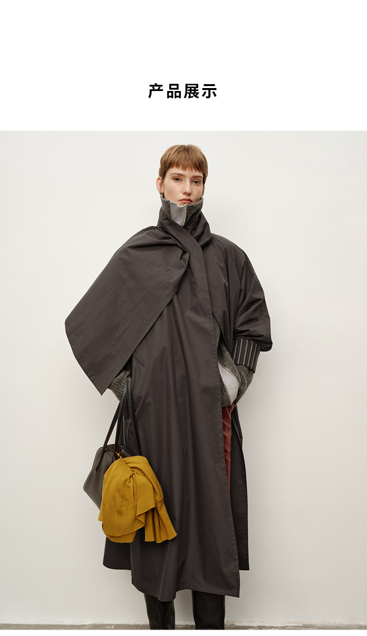 HIDEMI 极简几何不对称围巾设计感卷边宽松长款慵懒文艺风衣