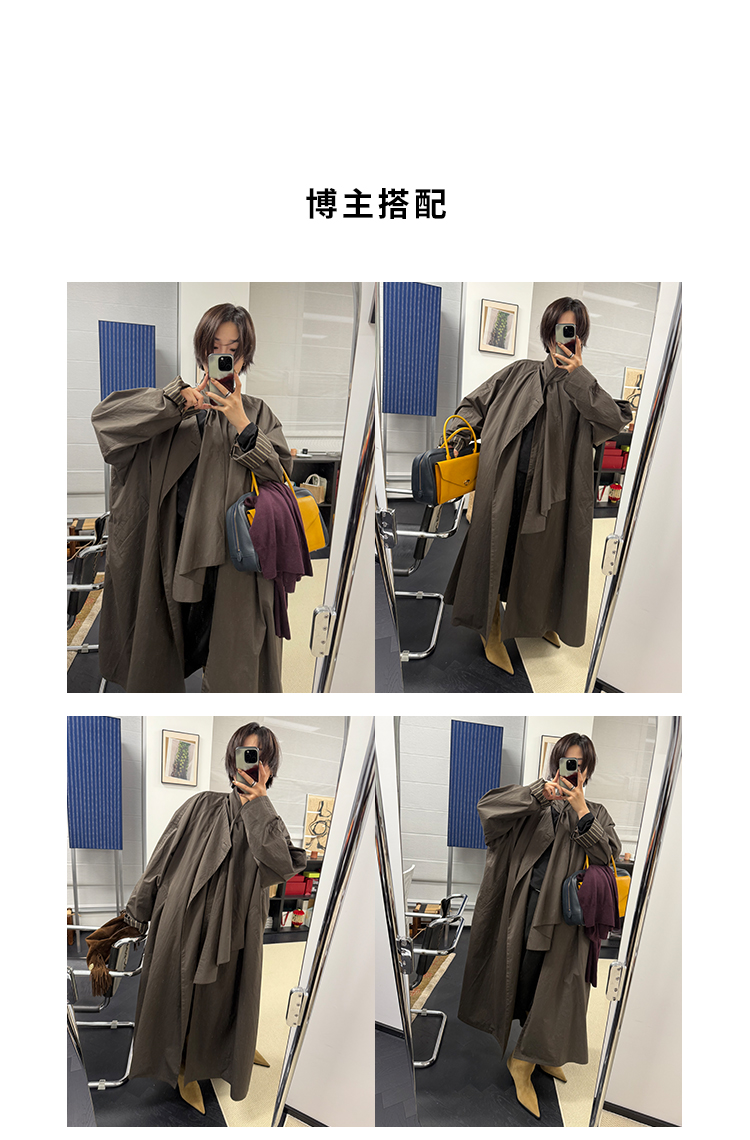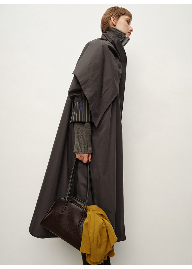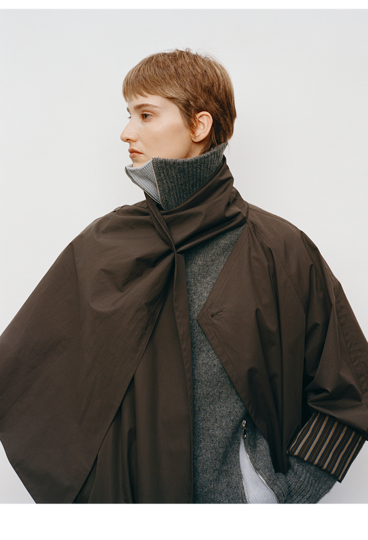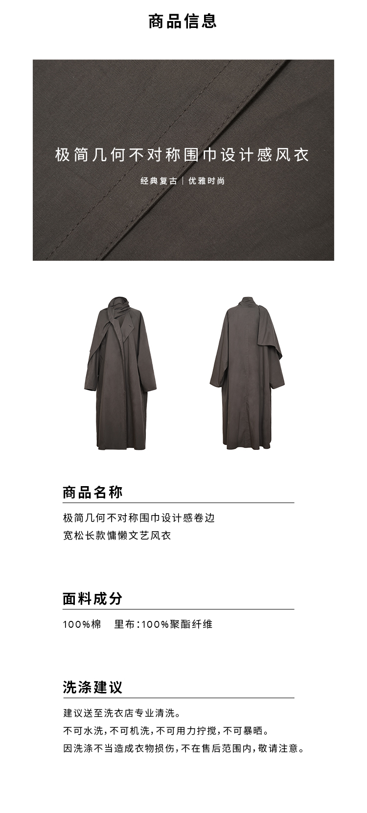 HIDEMI 极简几何不对称围巾设计感卷边宽松长款慵懒文艺风衣