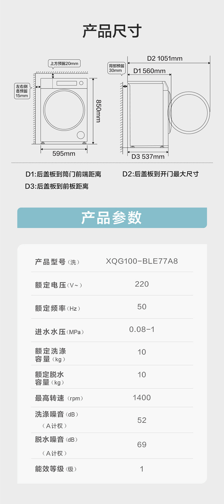 海尔(Haier) 洗衣机 XQG100-BLE77A8