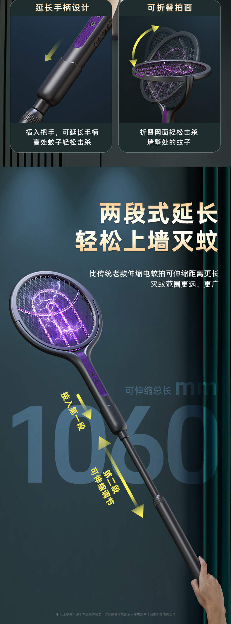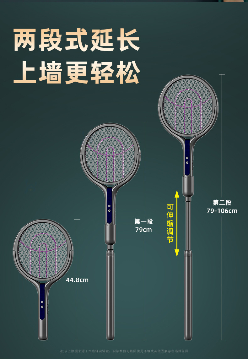 【一拍多用❗️伸缩灭蚊拍】诱蚊灭蚊二合一「横扫蚊虫困扰」延长手柄/网面可旋转,更大范围灭蚊,usb家用充电式电击式两用灭蚊器L