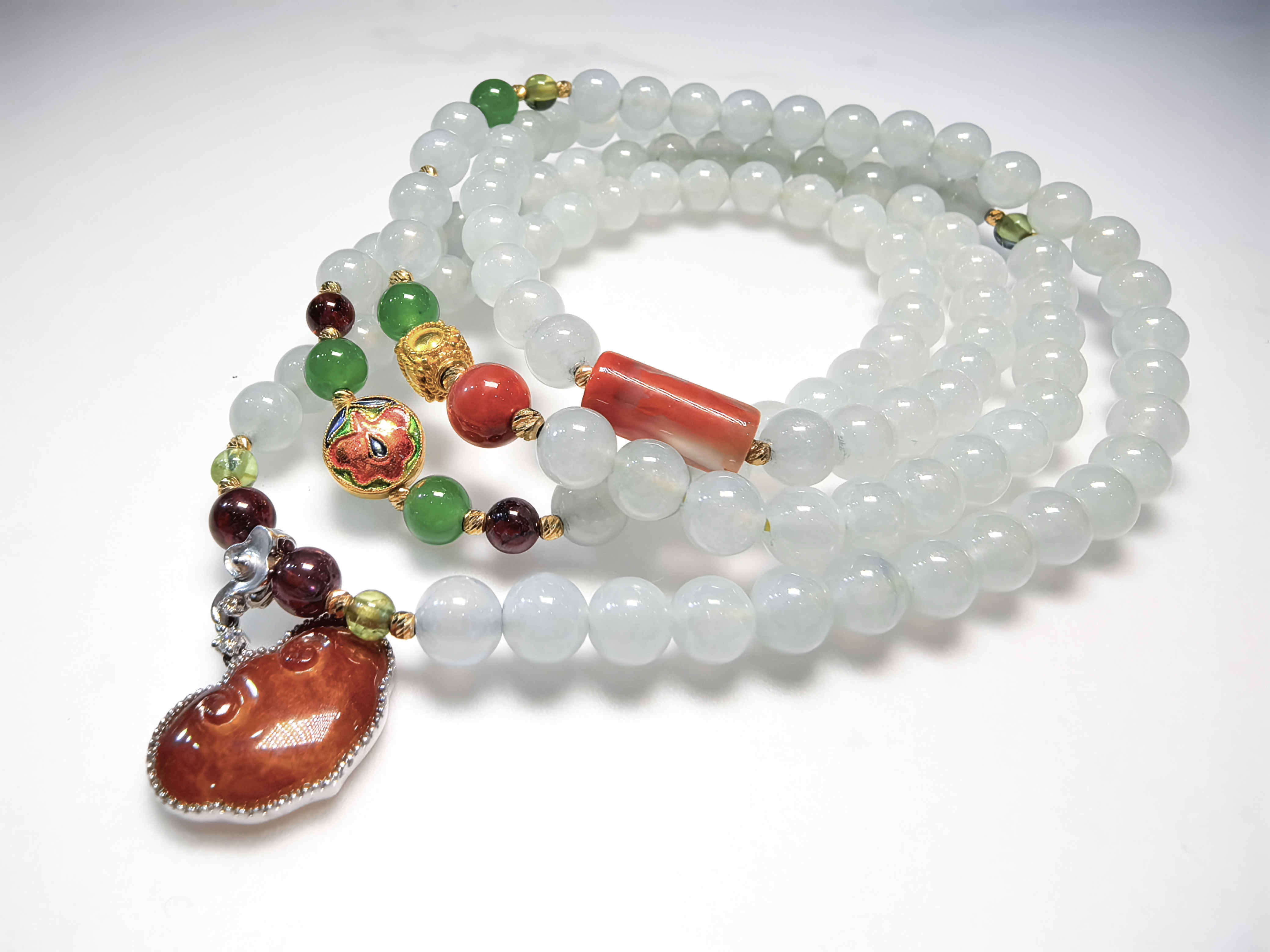 晴水翡翠珠链为多年收藏的品质缅甸料,一款一件,可定制新款,本款为现货。