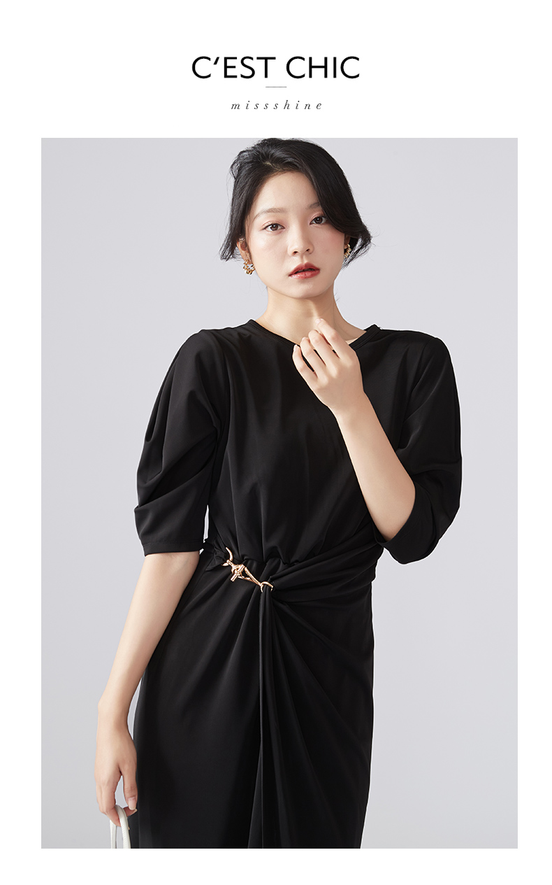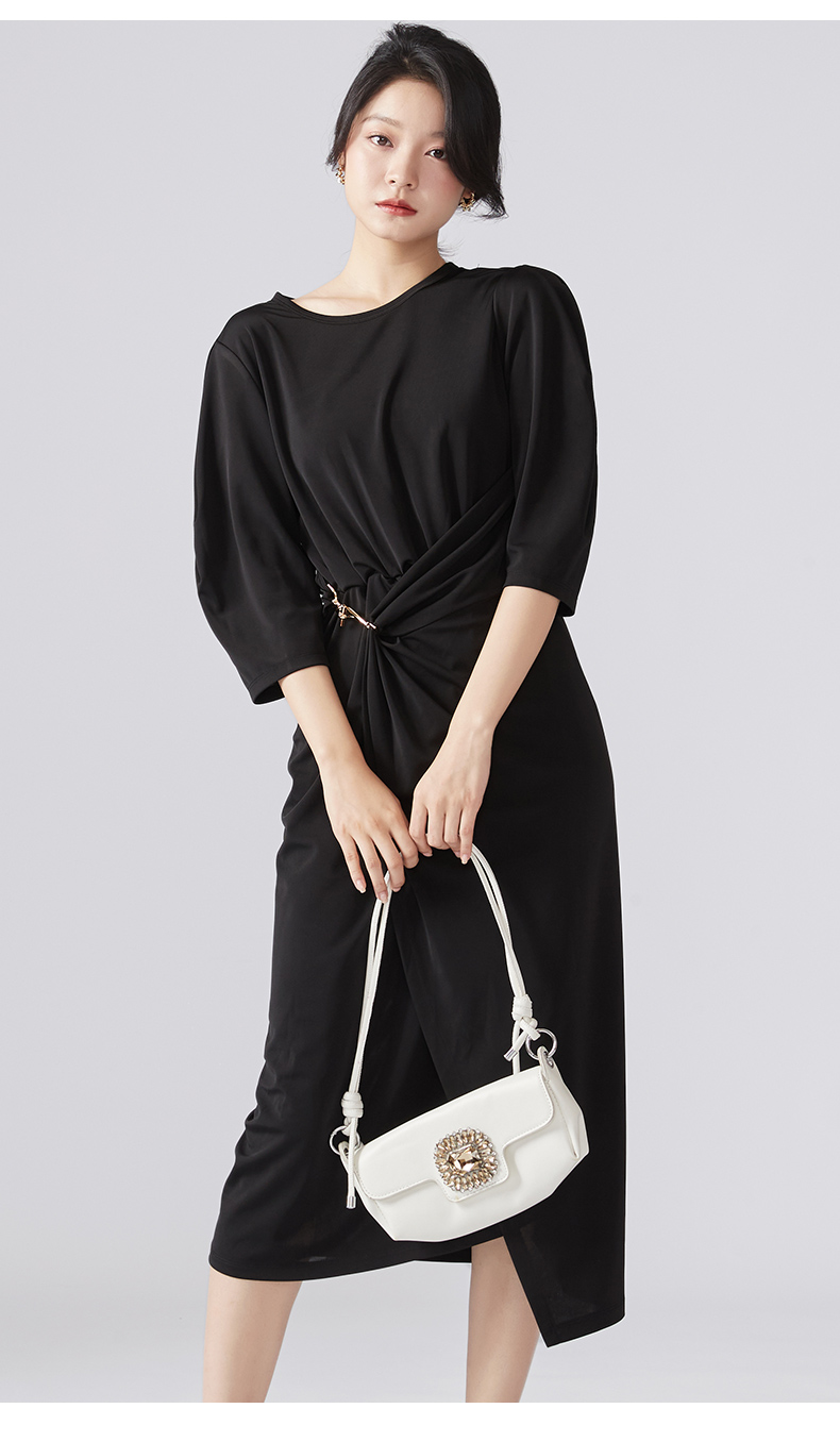 剩S/M 芳外新款优雅针织连衣裙气质收腰时尚裙子女8T22CL1445