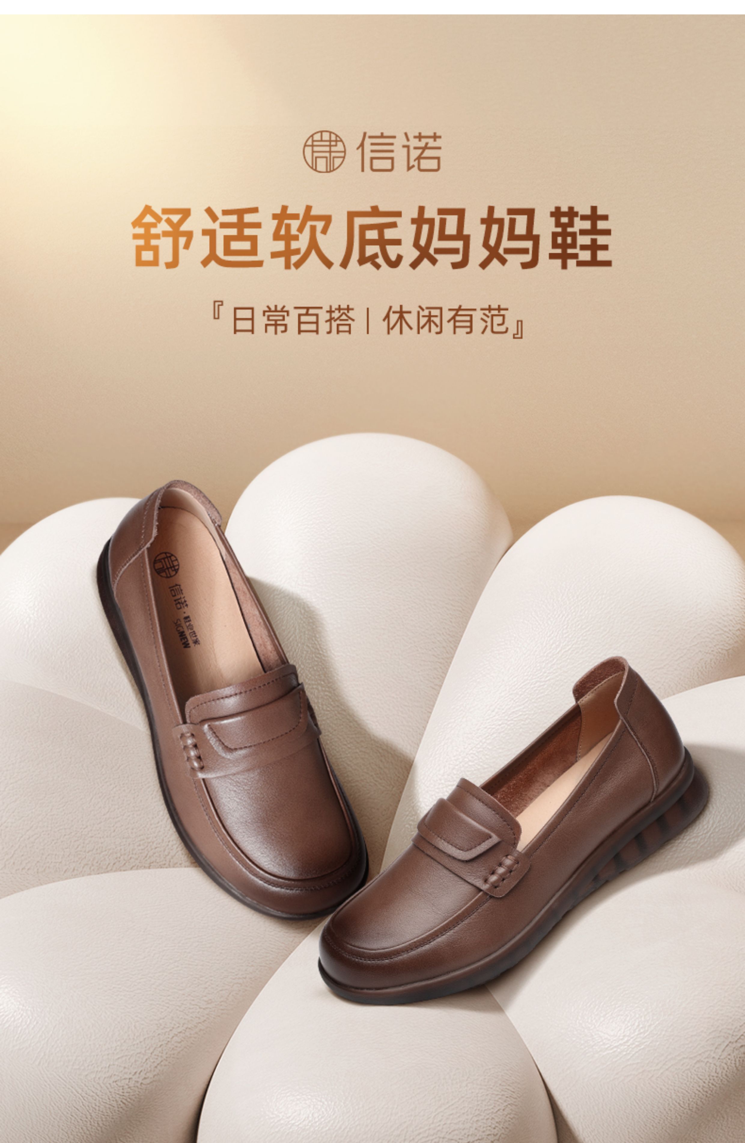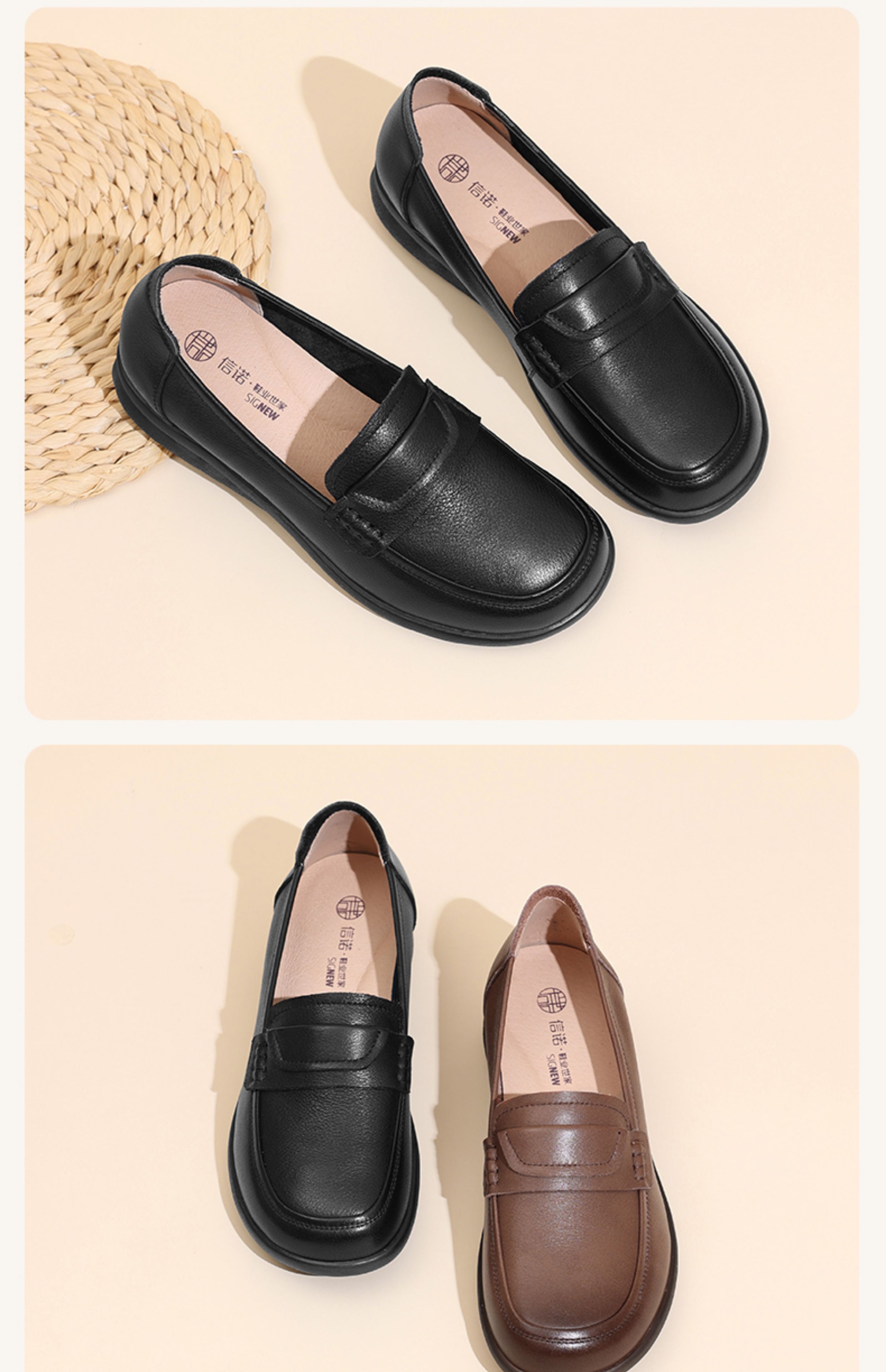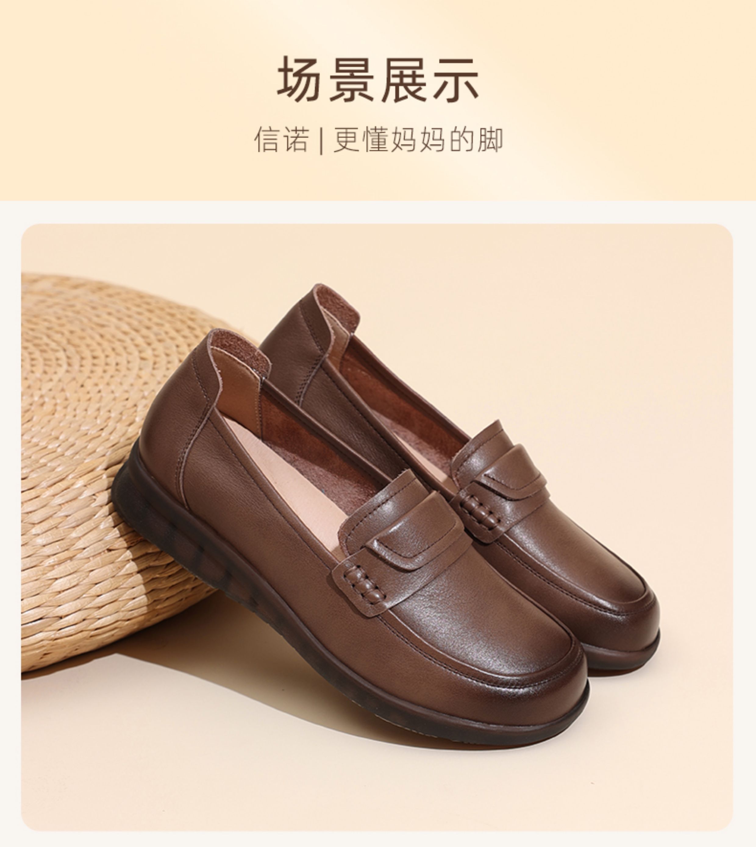 闰六月妈妈鞋子真皮软底单鞋女平底舒适不累脚乐福鞋2025新款秋季5Q3203-9
