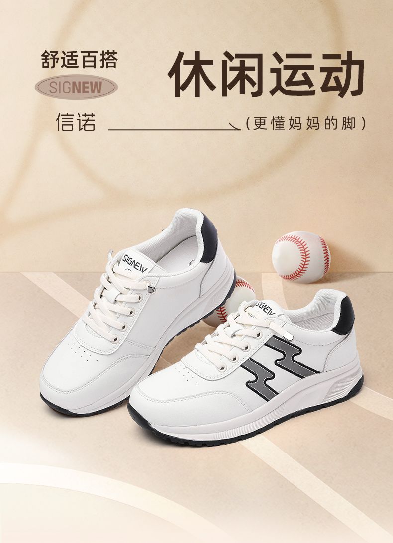 信诺舒适女鞋2024新款秋季厚底休闲老爹鞋百搭户外运动中年妈妈鞋Q5002-1