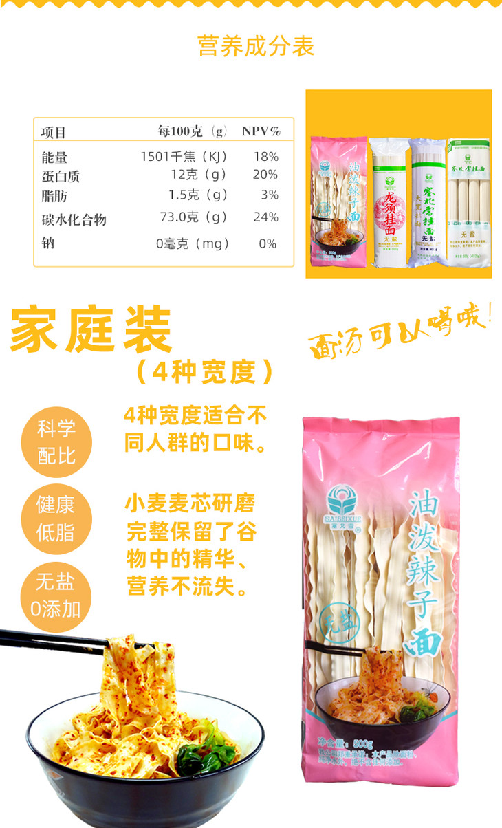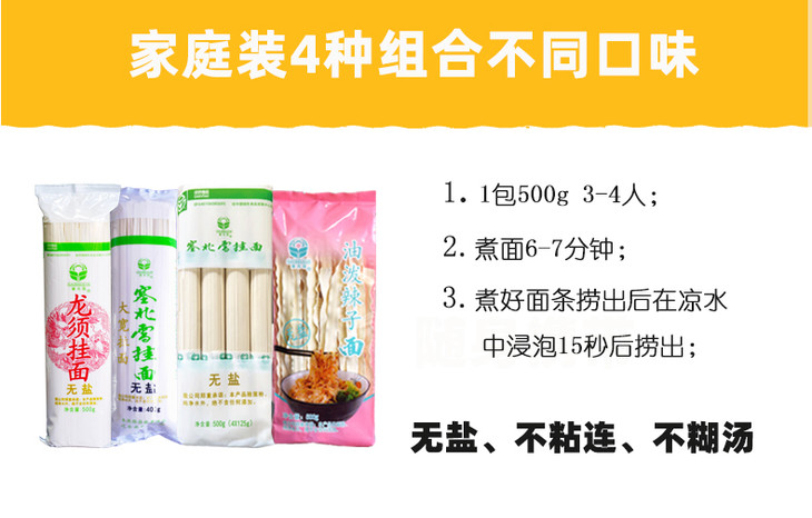 塞北雪挂面无盐无添加新款四包组合扎把挂面龙须大宽油泼面组合装