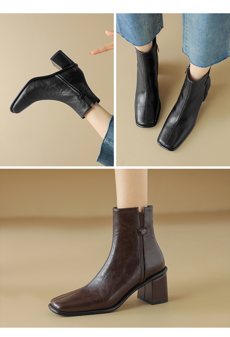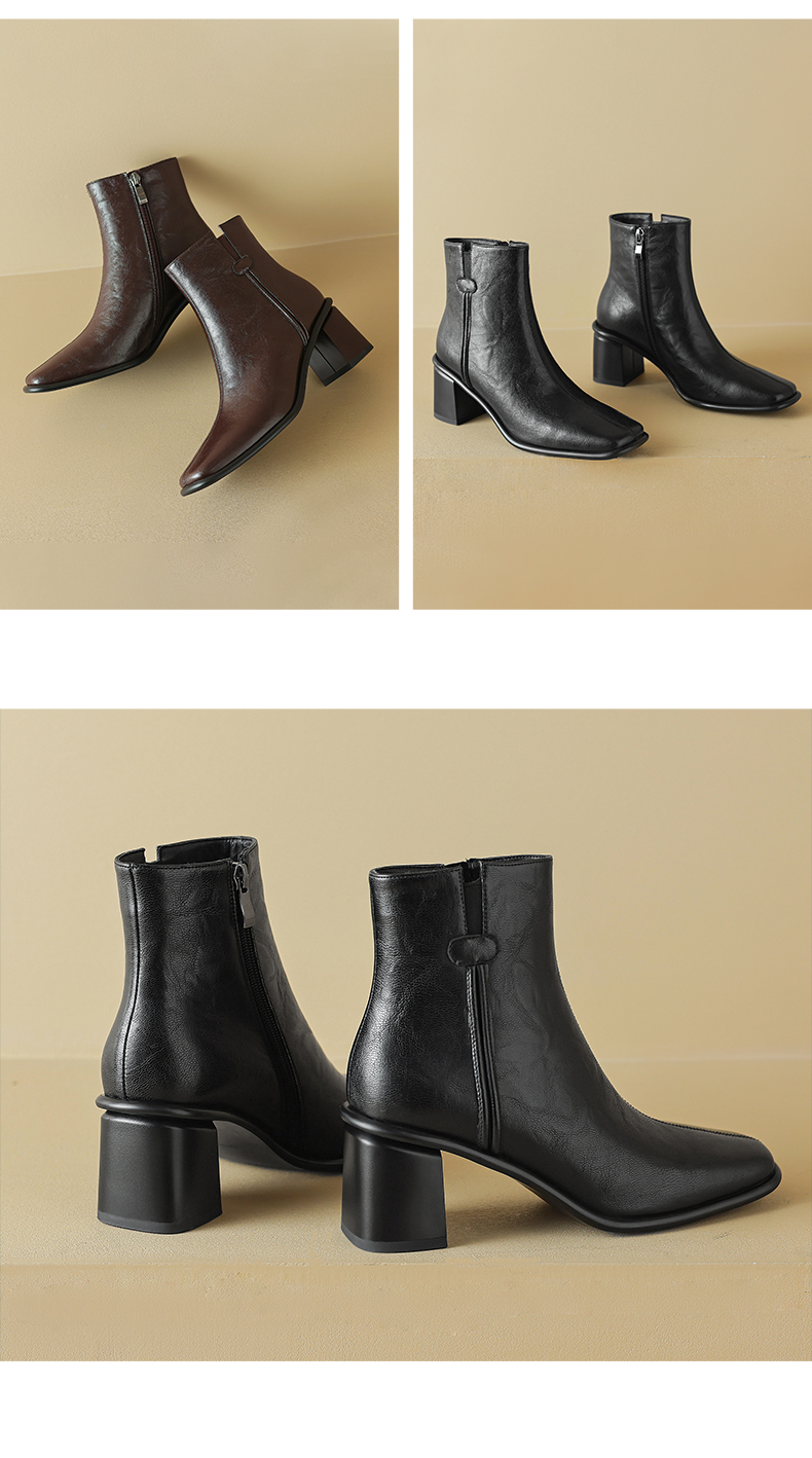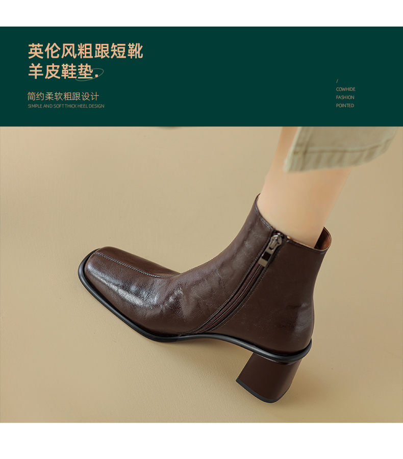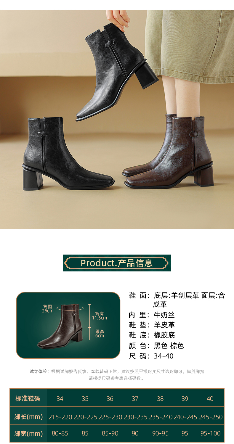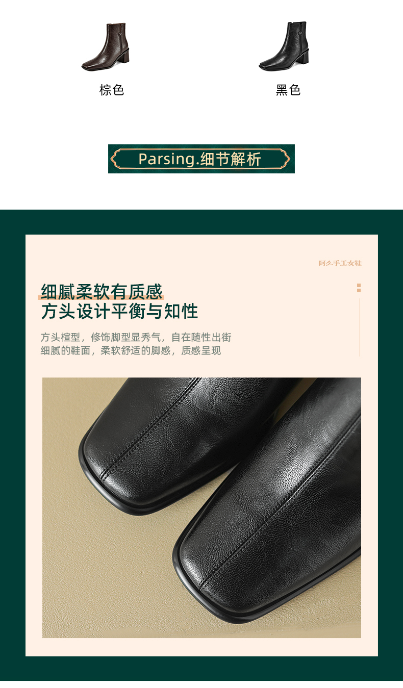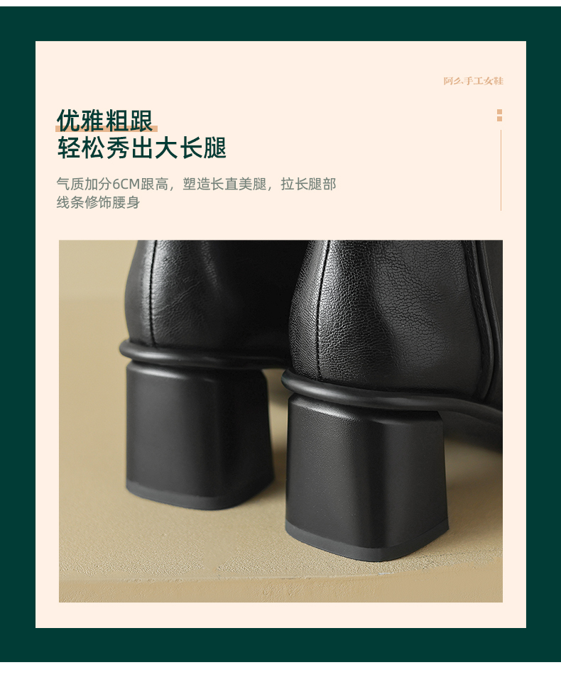 阿么手工女鞋复古高级感气质短靴2024秋冬新款时装靴优雅百搭6CM