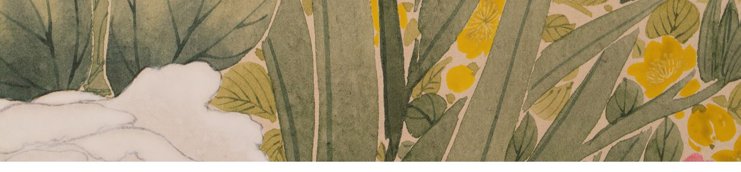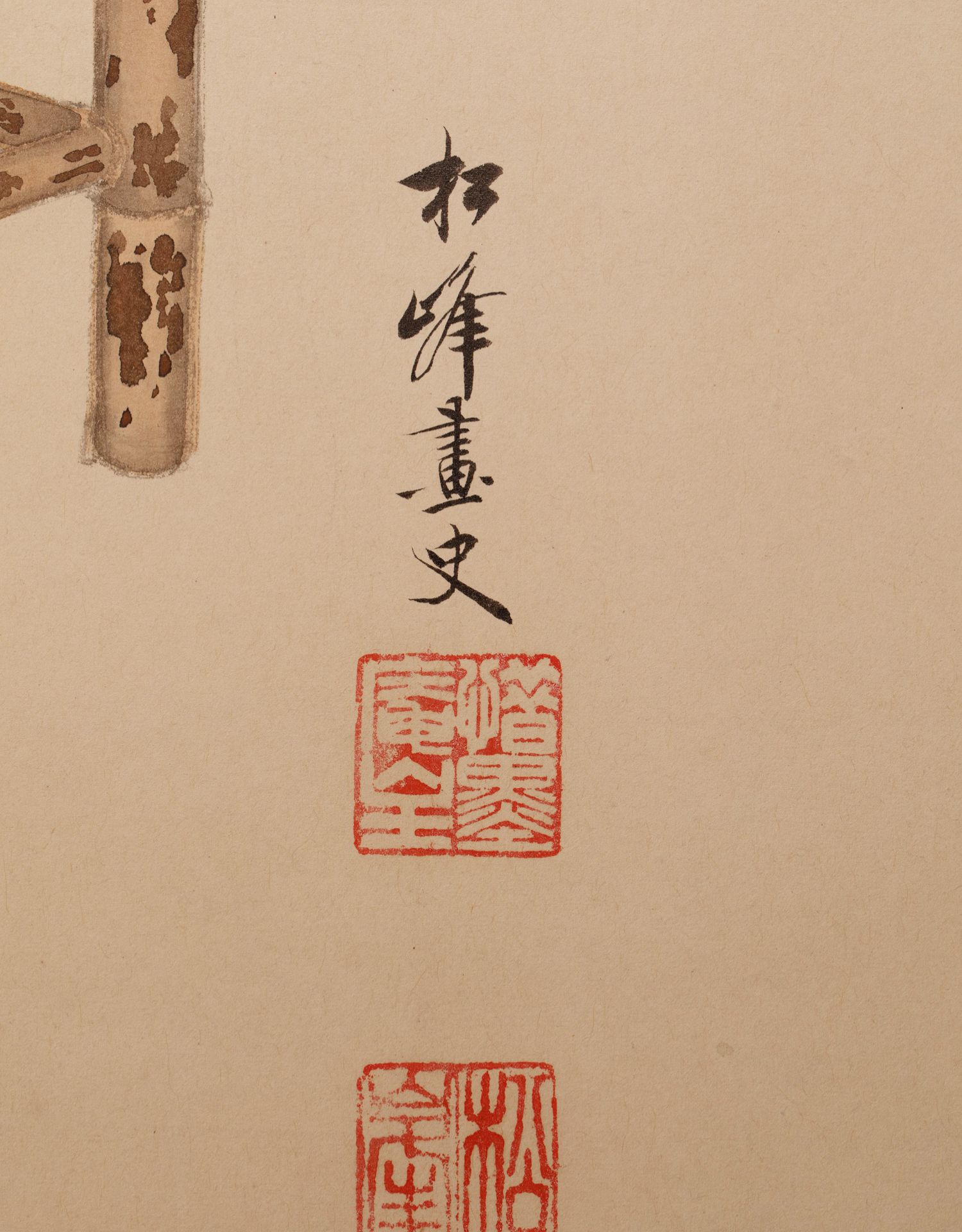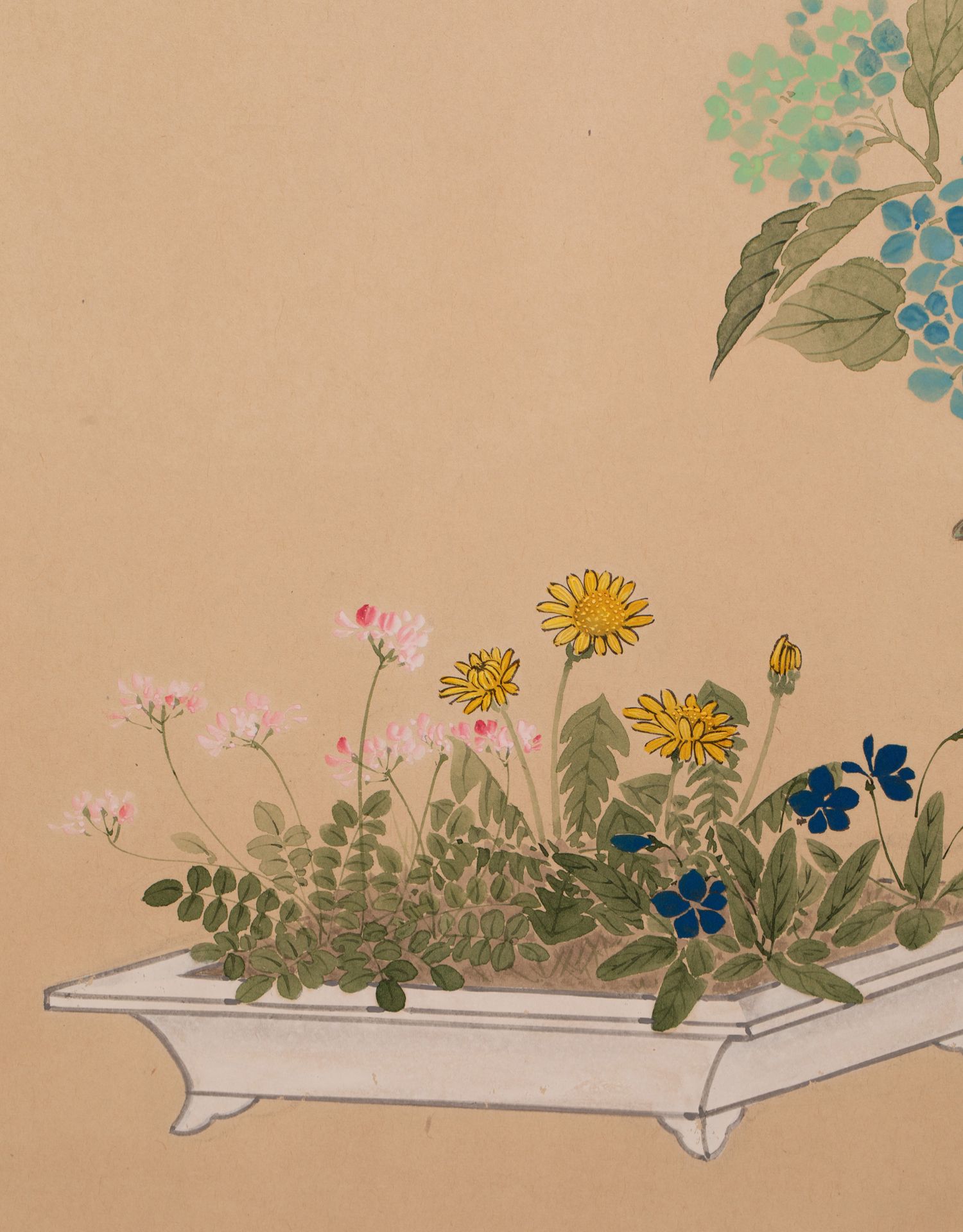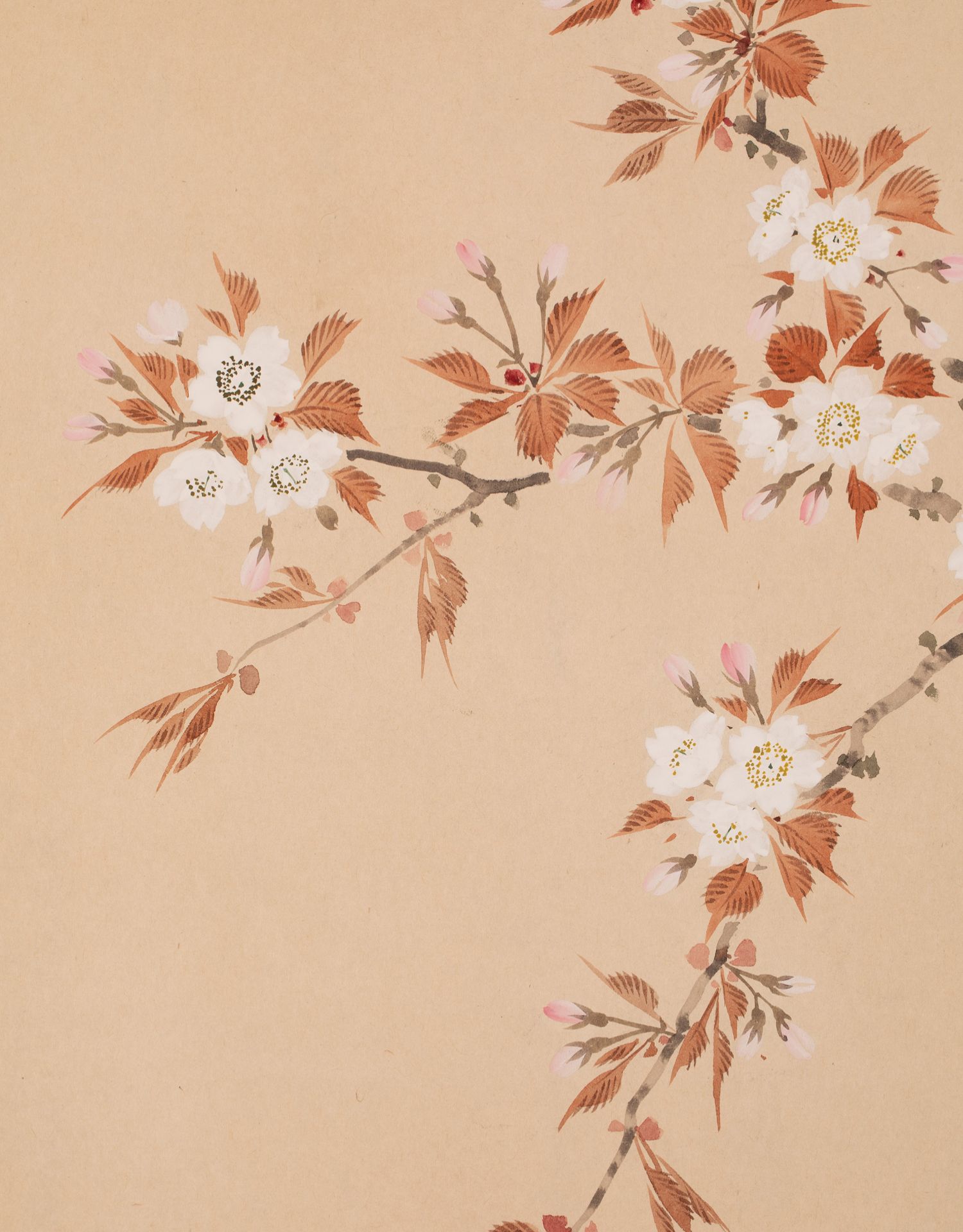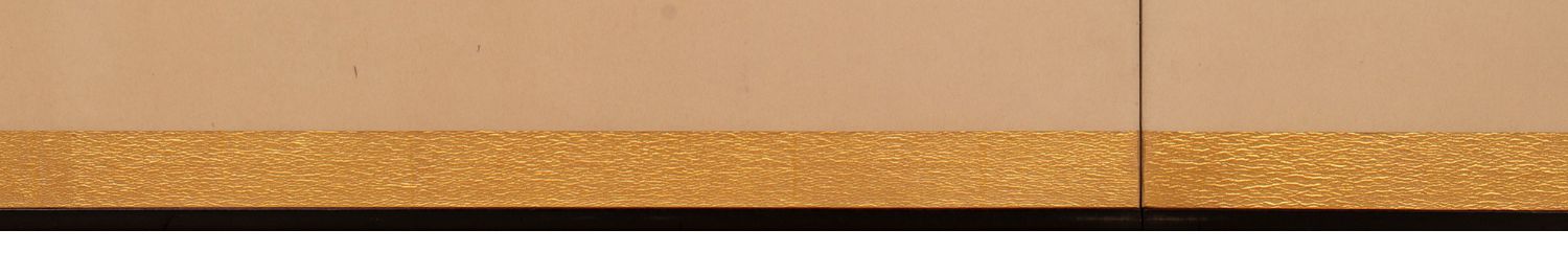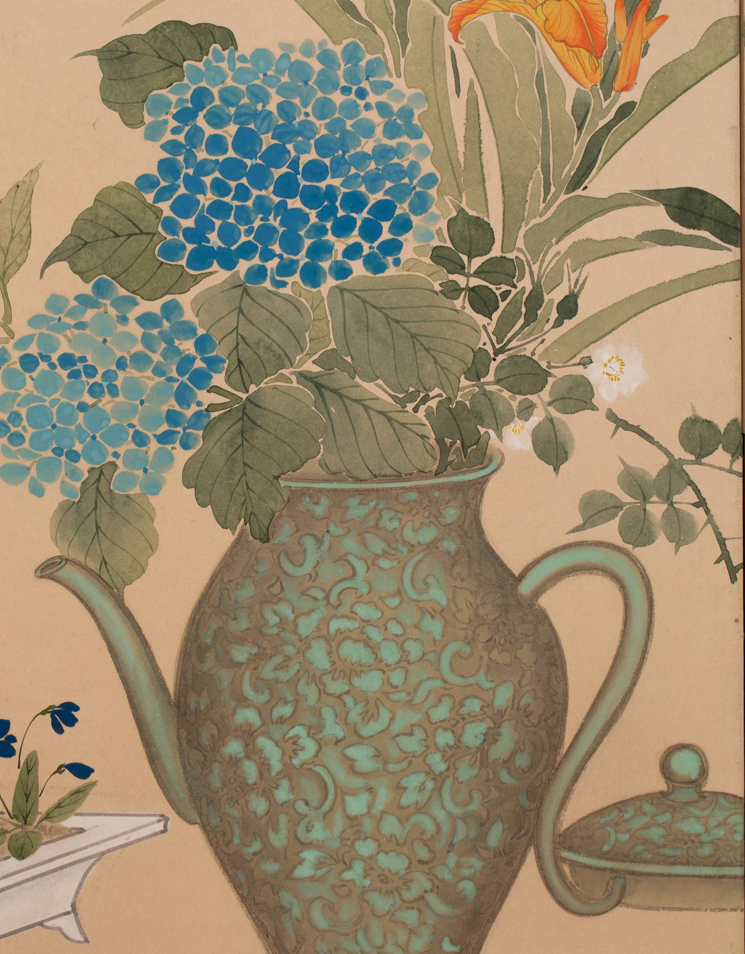 独角鹿西洋古董日本画家松峰签名富贵繁花博古纸本着色两曲屏风