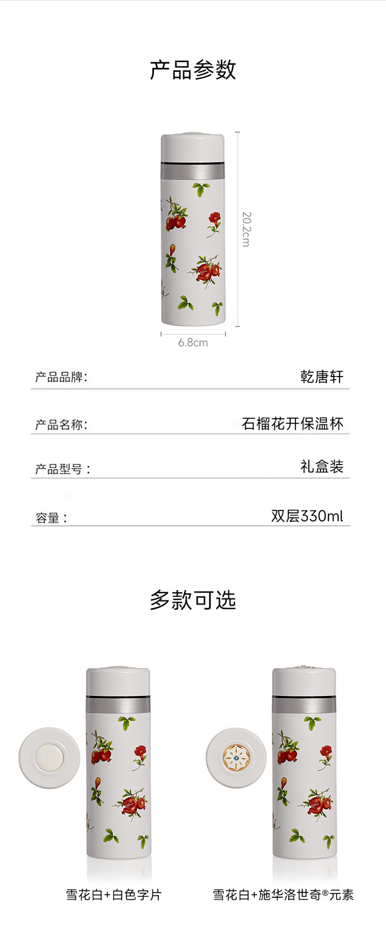 石榴花开保温杯双层330ml