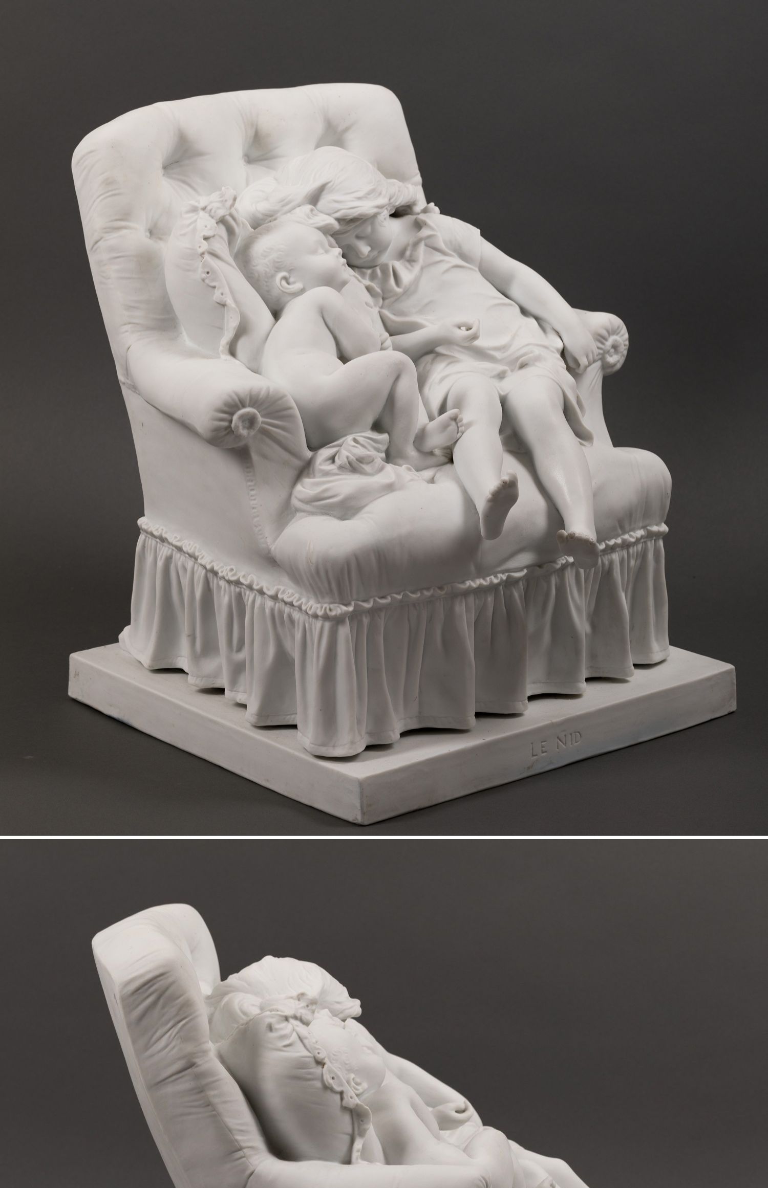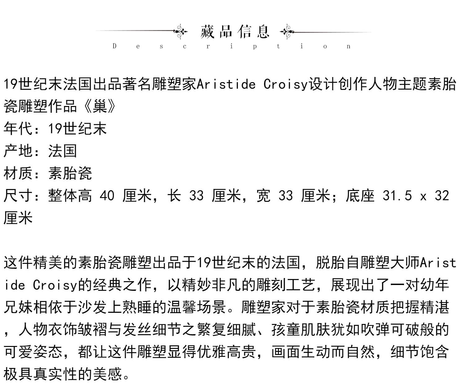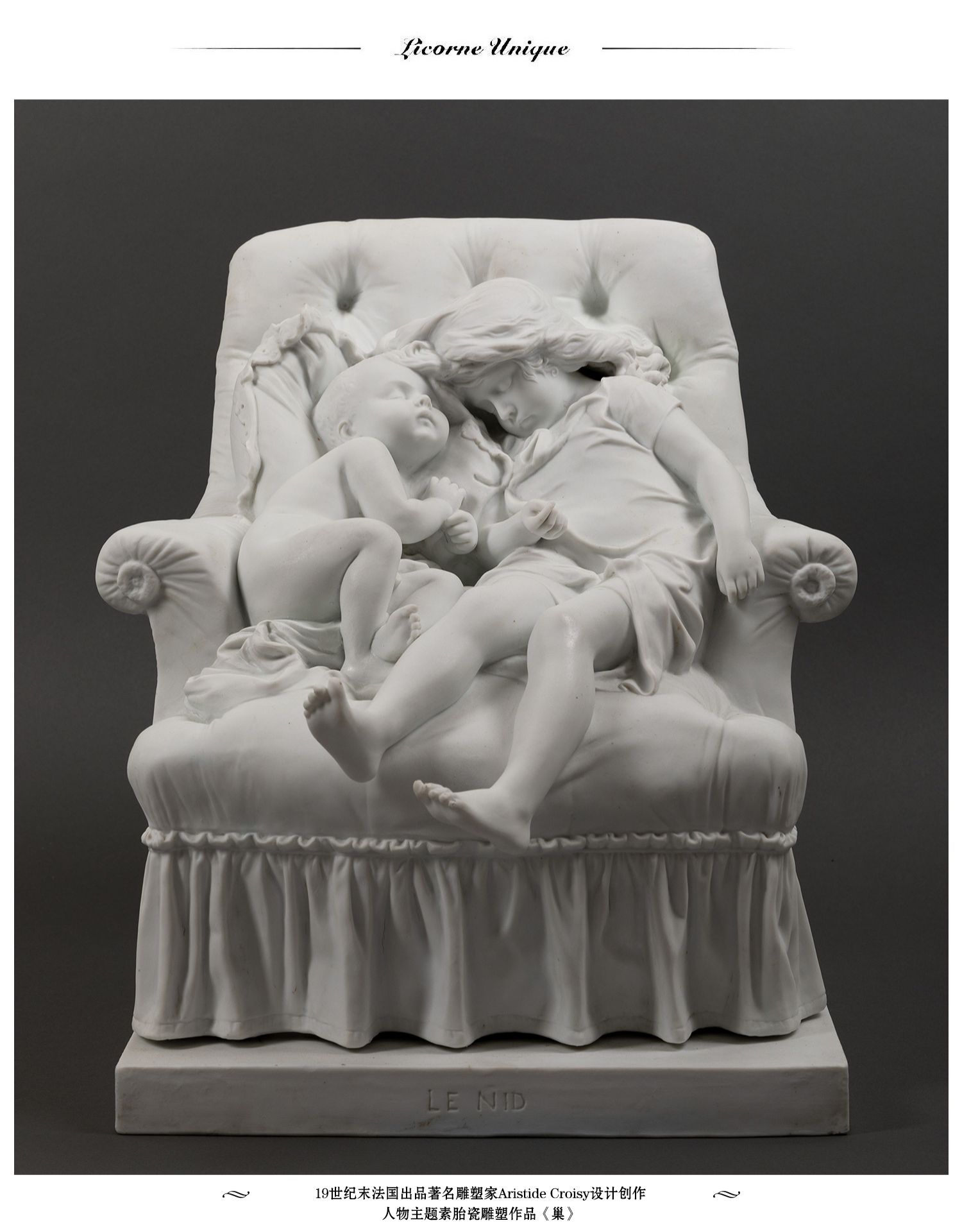 独角鹿西洋古董法国雕塑家设计创作人物主题素胎瓷雕塑《巢》