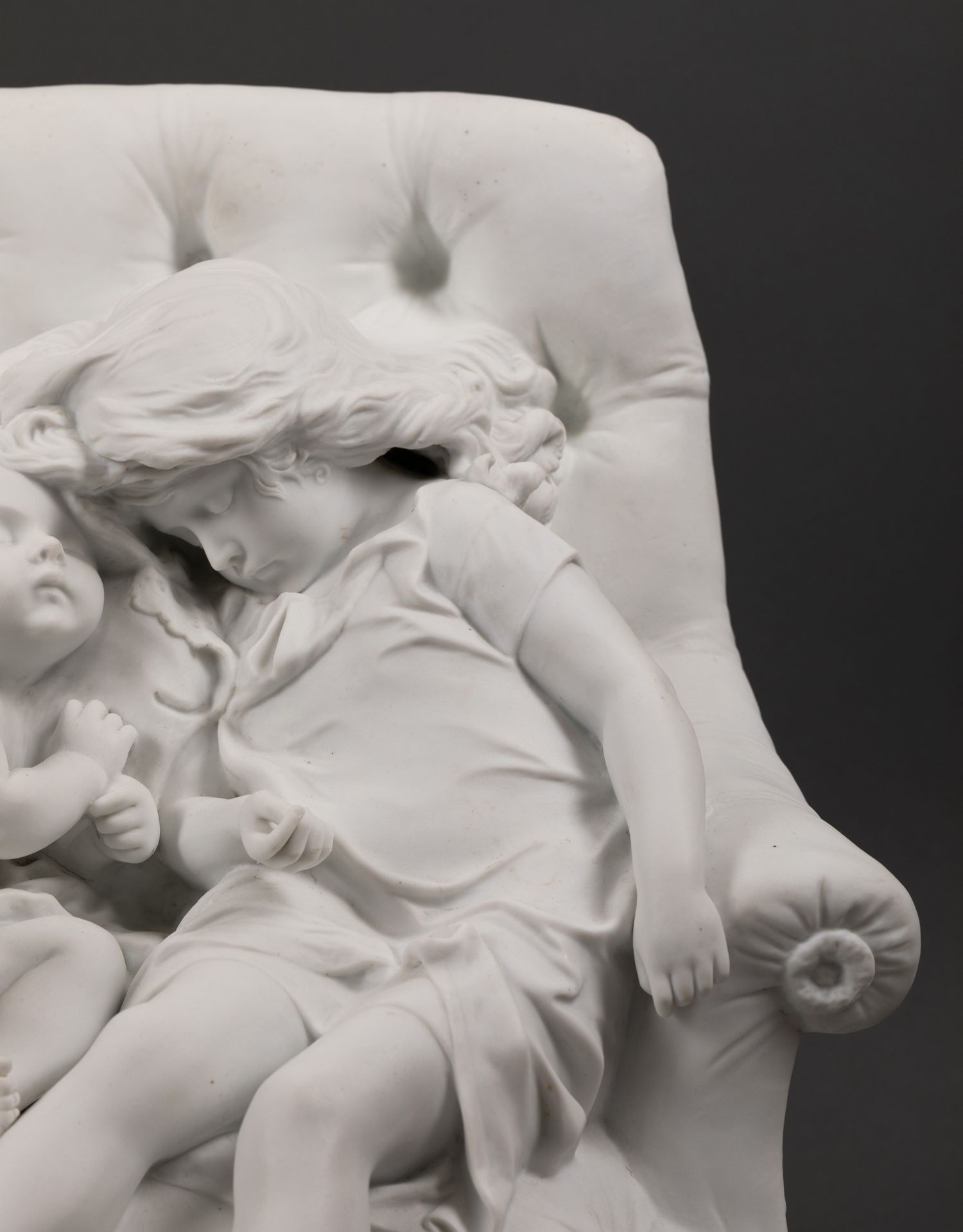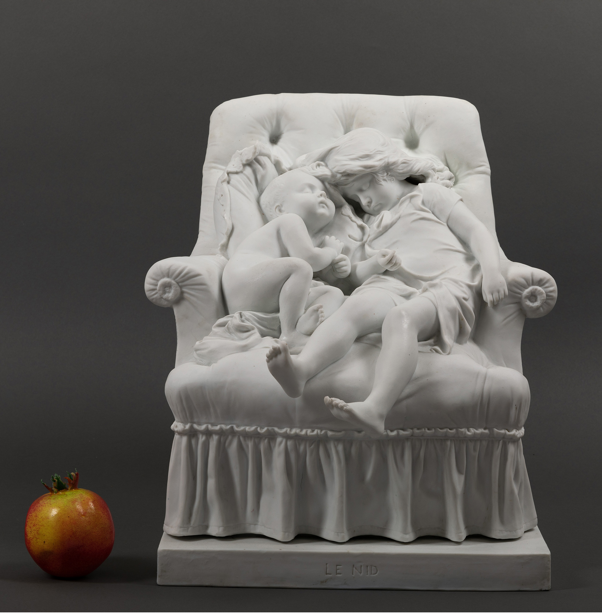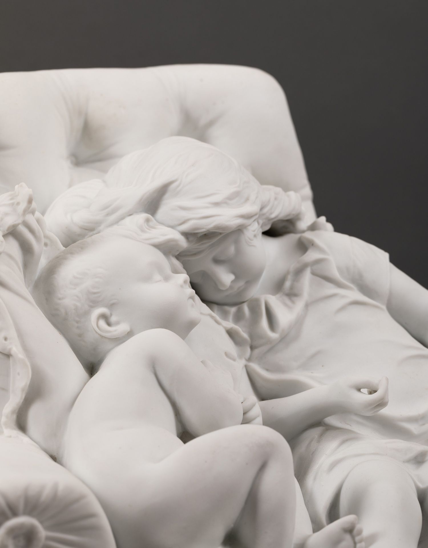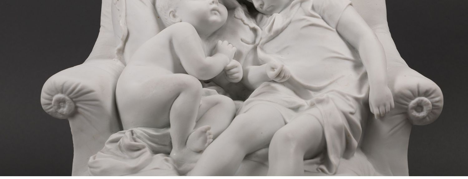 独角鹿西洋古董法国雕塑家设计创作人物主题素胎瓷雕塑《巢》