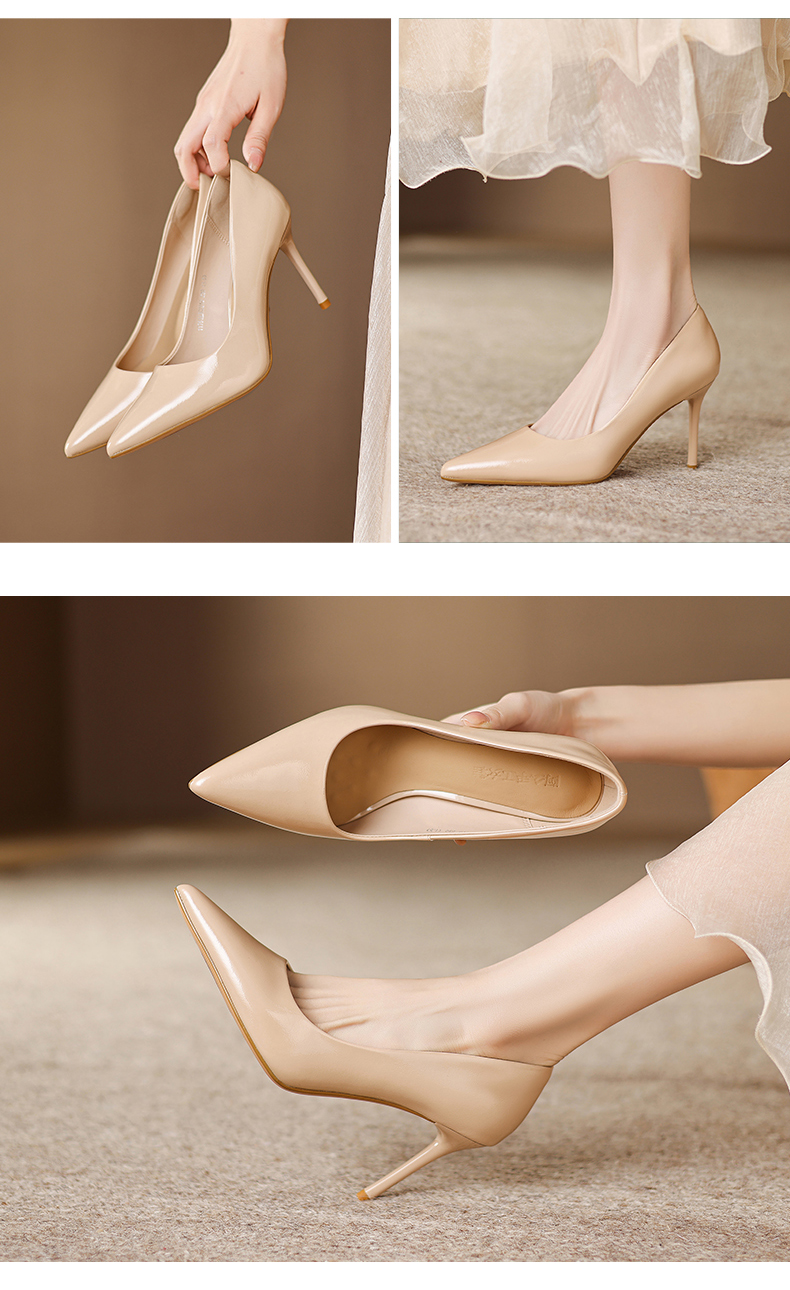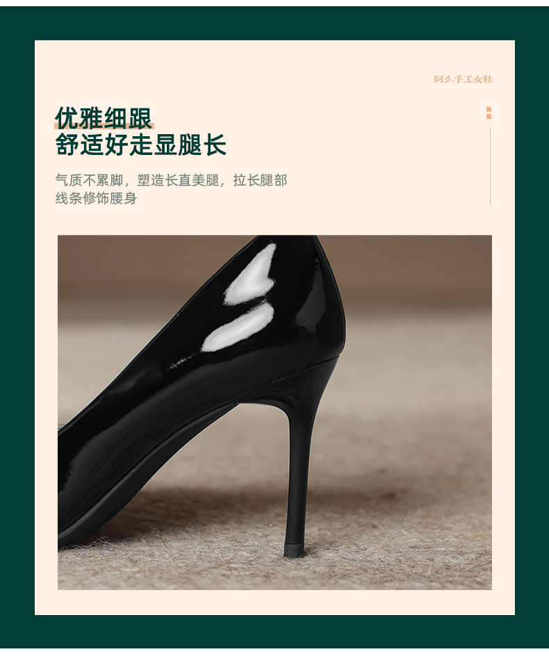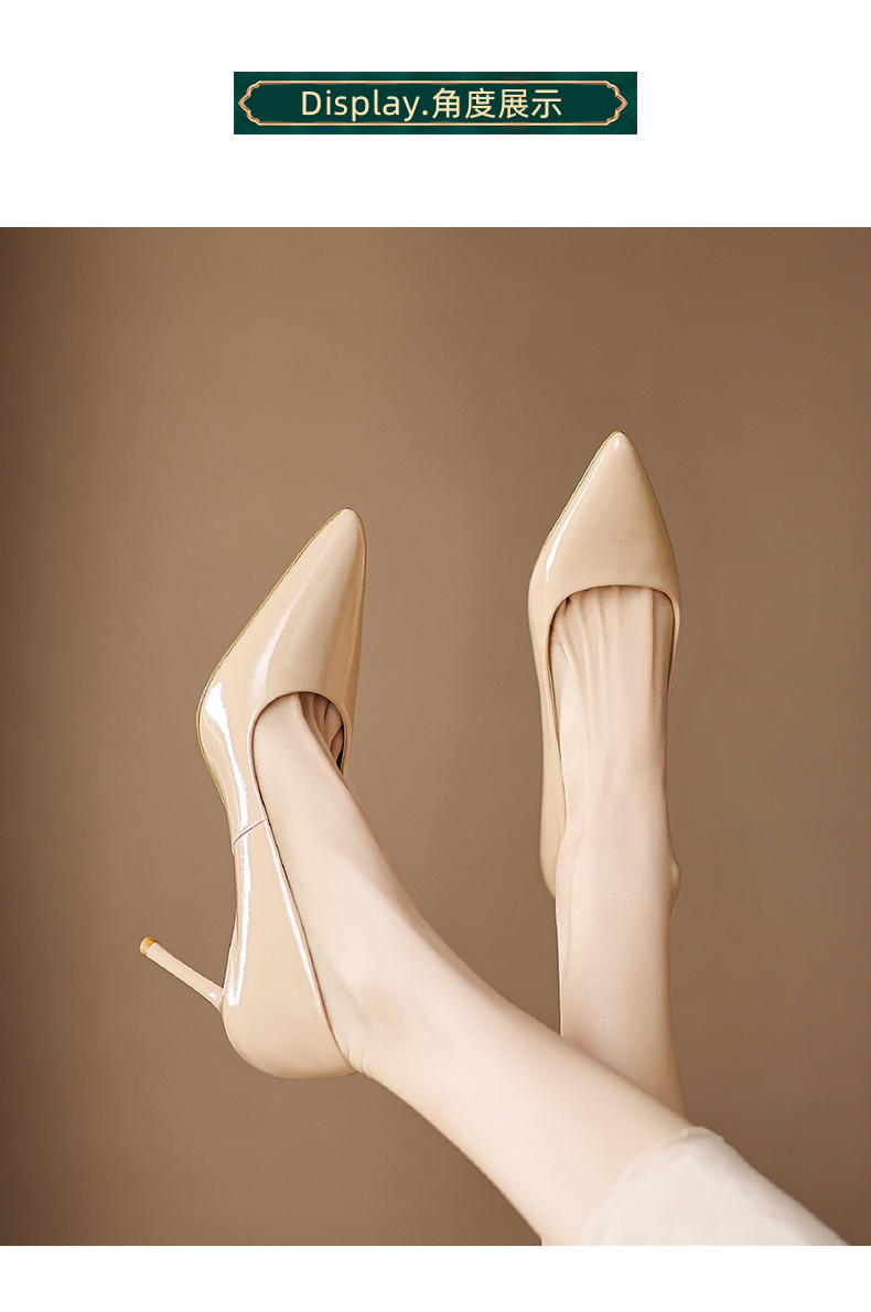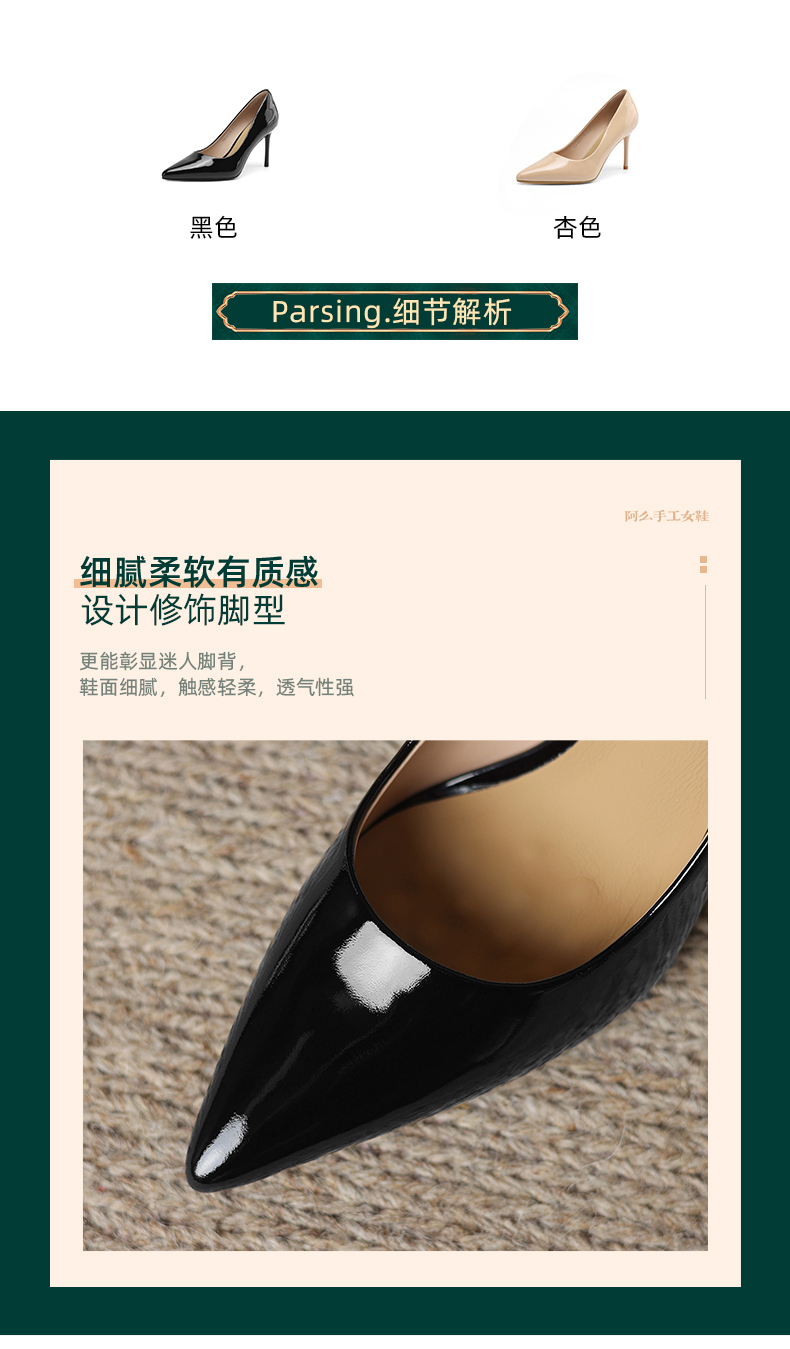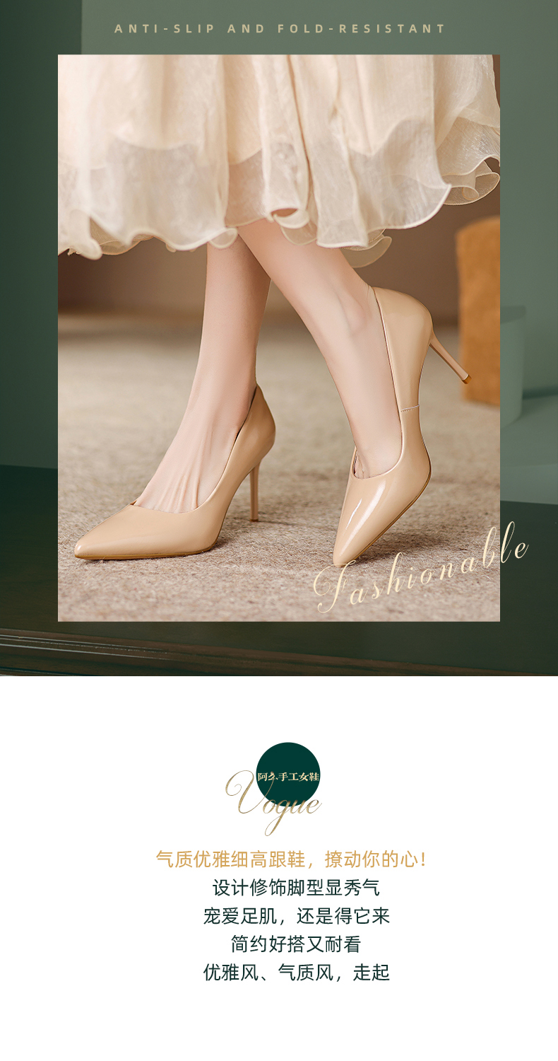 阿么手工女鞋时尚高级亮面高跟气质工作鞋女新款裸色高跟鞋8.5CM